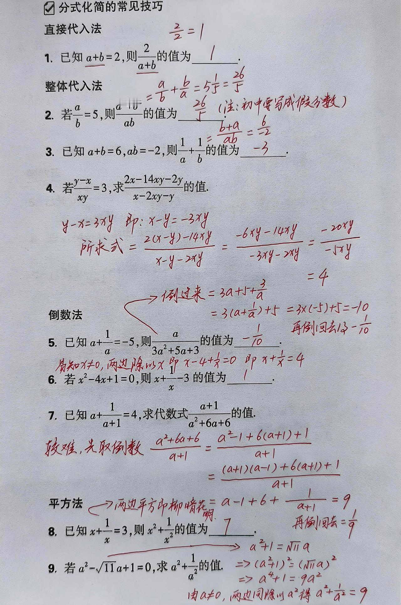把题刷透 就要各种方法各刷几道 叫做基本面要覆盖 以下是初中分式化简刷题示例