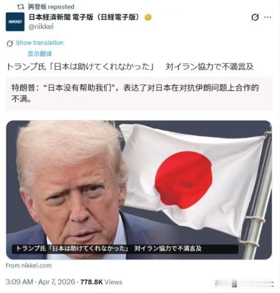 特朗普公开表露态度!如今这场由美国所发起的战争似乎已然走向了尾声,但美国对于日本的意见似乎又一次浮现了出来,特朗普这位美国总统公开表示,日本并没有在战争当中做出任何帮助美国的举动。 可能有人不知道,特朗普不是第一次吐槽日本了,早在一个月前,他就在社交媒体上发脾气,说美国根本不需要日本、韩国这些盟友的帮助。 这次更是直接点名,还顺带提了一嘴,美国在日本驻扎了5万士兵,天天保护着日本,言外之意就是,我花这么多钱养着兵保护你,你倒好,我打仗的时候你躲得远远的。 其实美国对日本的要求特别简单,就是希望日本能在关键时刻搭把手,这次美国打伊朗,想让日本派海军去霍尔木兹海峡帮忙护航,结果日本压根没敢答应,就找了个借口,说自己有法律规定,不能随便出兵。 日本说的法律,就是他们的和平宪法,里面规定不能向海外派自卫队参与战争,可明眼人都知道,这只是借口而已。 日本最担心的,是自己的能源安全,他们的石油几乎全靠从中东进口,要是帮美国对付伊朗,伊朗一旦封锁海峡,日本就彻底断油了,所以日本宁愿得罪美国,也不敢真的帮美国出兵。 这一下可把特朗普惹毛了,直接当众甩脸子,一点情面都没留,对日本来说,这绝对是个坏消息。 现在日本在中日对峙的事情上,早就把所有希望都寄托在美国身上了,他们本来以为,只要跟着美国混,美国就会帮他们撑腰,可现在倒好,他们没帮美国打仗,美国肯定记仇,以后日本再想让美国帮着对付中国,估计美国会直接敷衍了事,甚至懒得搭理。 最坐不住的,就是日本首相高市早苗了,之前她还特意去美国讨好特朗普,又是投资又是让步,结果还是没换来美国的真心。 据说上次她访美,特朗普还拿珍珠港事件调侃她,一点尊重都没有,现在特朗普又当众批评日本,高市早苗在国内也没法交代,国内民众本来就对她的对美政策不满,现在美国这么不给面子,她的支持率肯定会暴跌。 而且更麻烦的是,美国最近还把日本订的400枚战斧导弹给延期交付了,日本本来想靠这些导弹提升自己的军事能力,结果美国因为自己打仗弹药不够,就把日本的订单给拖了。 这事儿也能看出来,美国从来就没把日本当成平等的盟友,在特朗普眼里,盟友就是用来利用的,有用的时候就拉拢,没用的时候就一脚踢开。 日本这么多年一直跟着美国,又是交保护费,又是帮美国办事,到最后还是被美国嫌弃,我觉得这都是日本自找的。 他们一直抱着美国的大腿,以为这样就能高枕无忧,却忘了美国从来都是利益至上,你有用,美国就对你笑脸相迎;你没用,美国立马就变脸。 而且日本也不想想,自己跟着美国对付中国,本来就是一步错棋,中国和日本是邻居,本来可以好好合作,一起发展,可日本偏偏要跟着美国一条路走到黑,到处找中国的麻烦,现在美国自身都难保,哪还有心思帮日本。 说白了,美日之间根本就不是什么盟友关系,就是一场利益交易,美国提供保护,日本出钱出力,一旦日本没了利用价值,美国就会毫不犹豫地抛弃它。