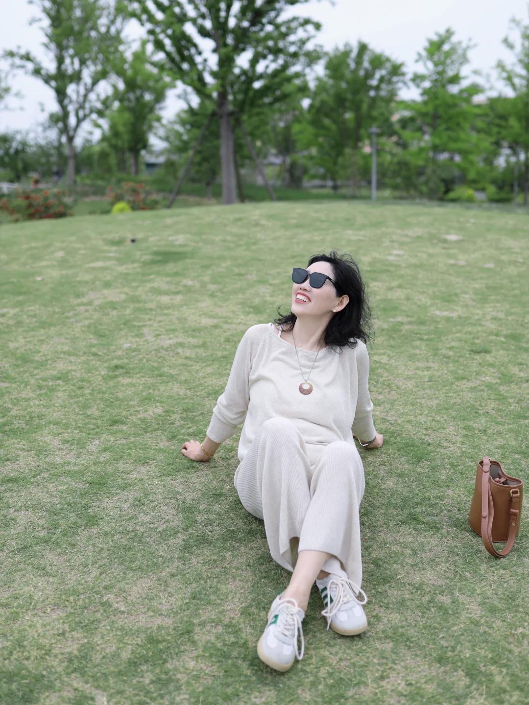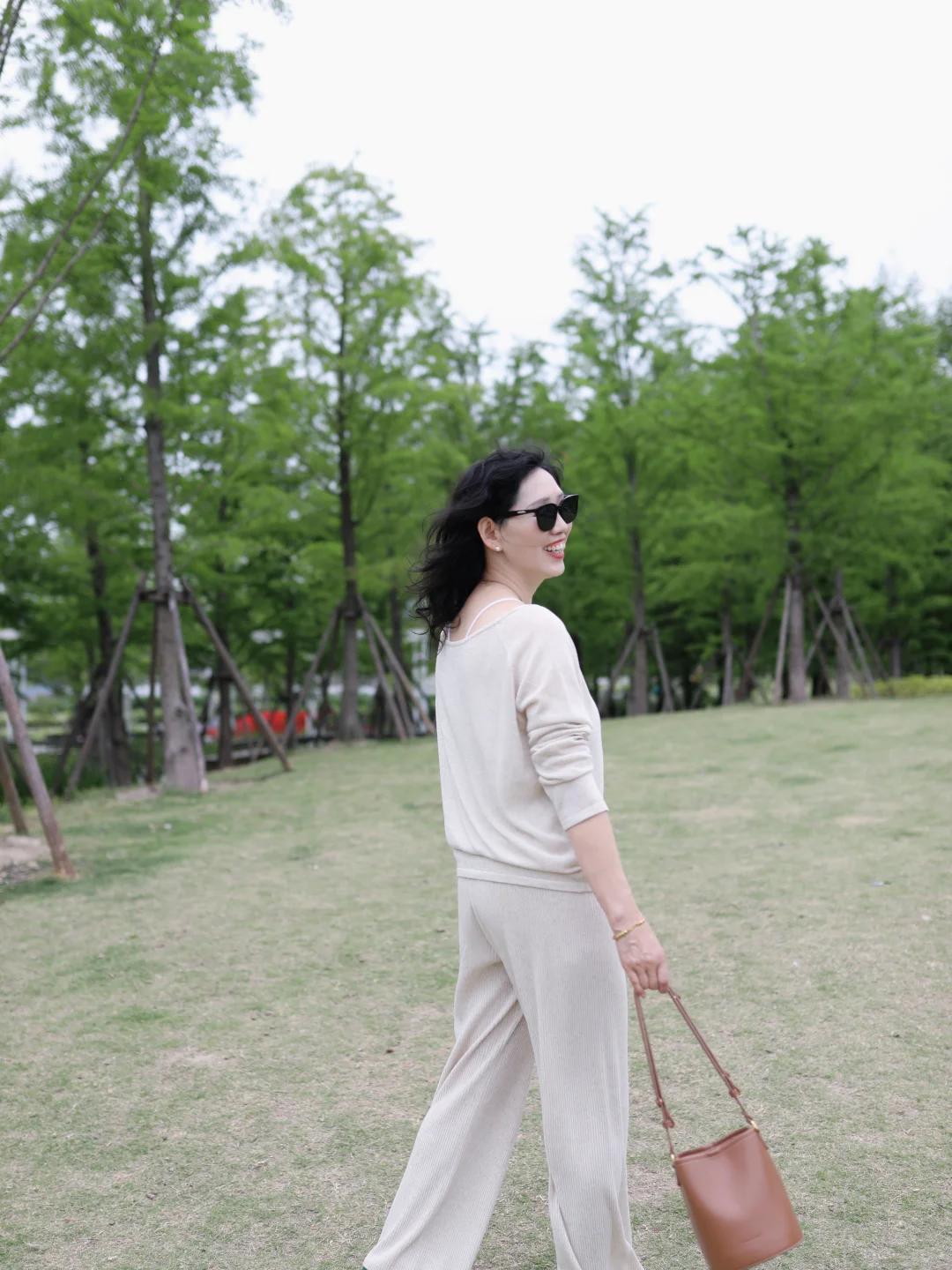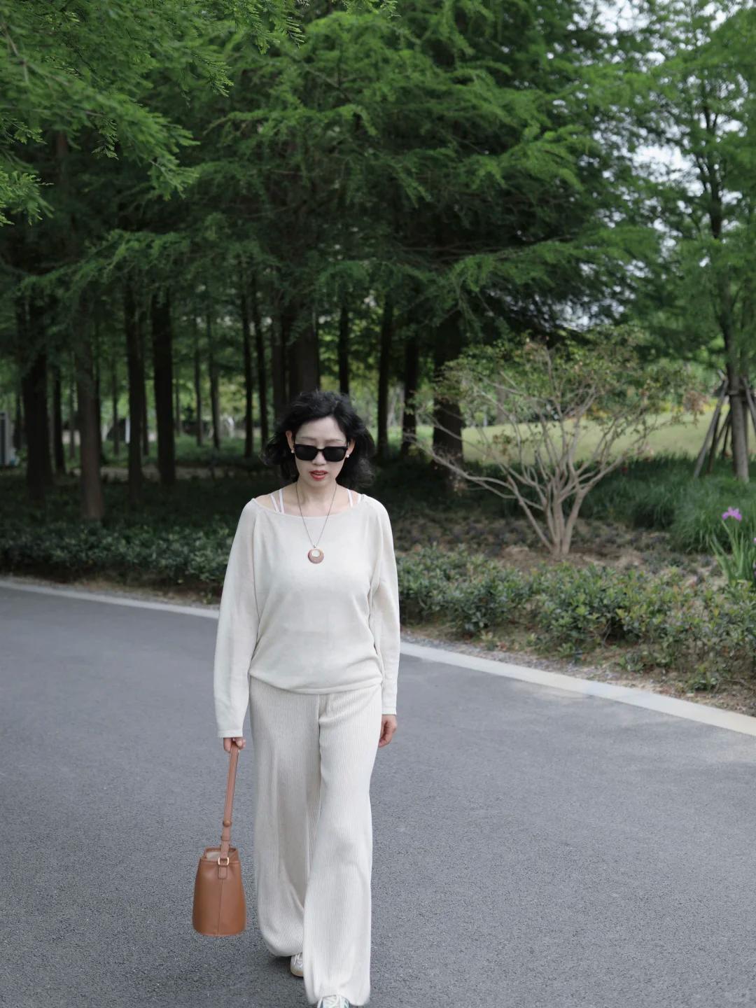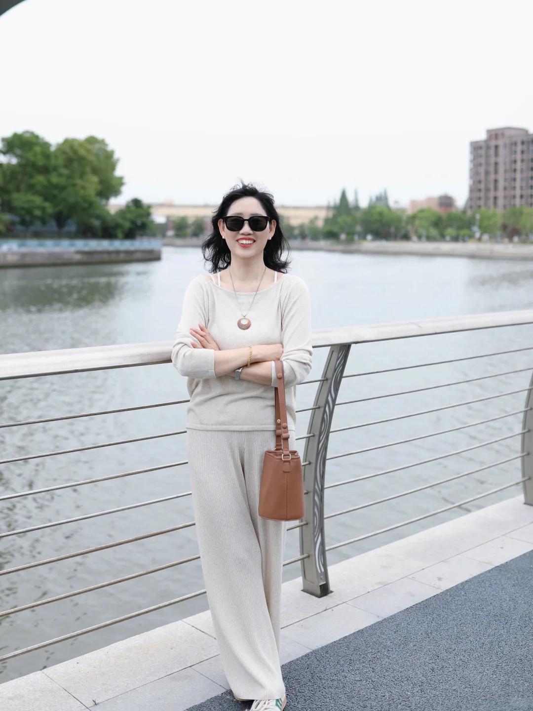 57岁初夏松弛感|同色系针织套装,温柔又高级✨ 初夏的穿搭,讲究的就是一个舒服自在!57岁的中年博主,太适合这种同色系的针织搭配了,慵懒又显贵,松弛感直接拉满~ 浅灰色针织衫绝对是本命单品!宽松的版型对身材包容度超高,一点不挑人。软糯的面料亲肤透气,穿上身就像被云朵轻轻包裹着,舒服到不想脱下来。简约的纯色设计,自带一种低调的温柔感,特别显气质。 搭配的同色系浅灰色针织阔腿裤,更是点睛之笔!垂坠感绝了,裤腿宽松又飘逸,走起路来飘飘扬扬,特别有氛围感。它能完美藏起腰腹和腿部的小肉肉,修饰腿型一绝,显瘦效果肉眼可见! 整套同色系搭配,视觉上拉长身形,显高又显瘦,简约又高级。不管是日常出门买菜、接娃,还是和闺蜜下午茶,都轻松拿捏松弛感。中年女人的美,就藏在这一身舒适与质感里呀~ps:图片来源于小胡阿姨