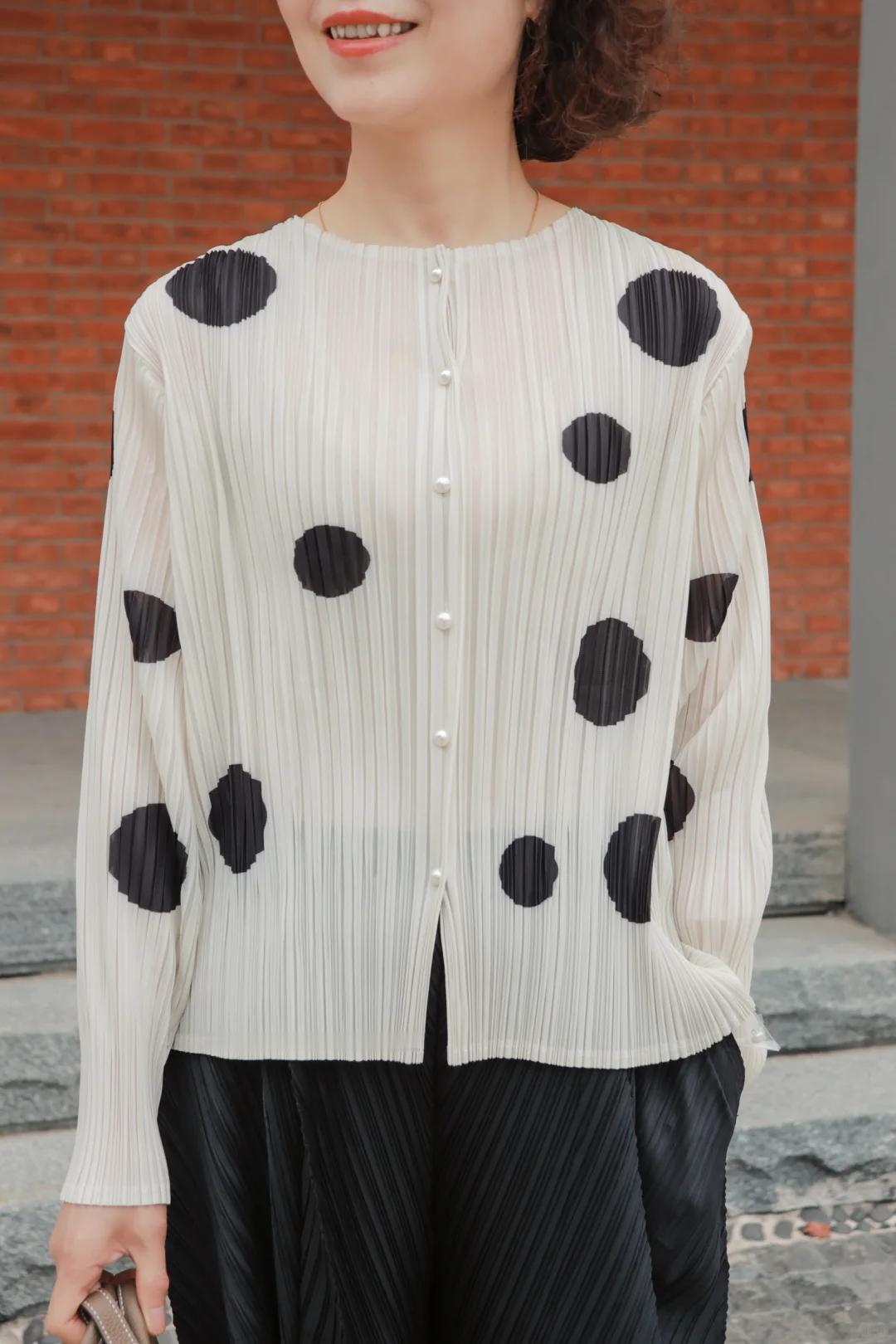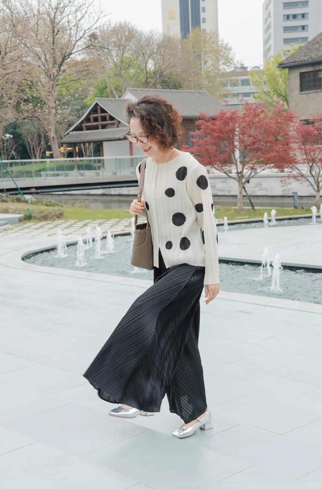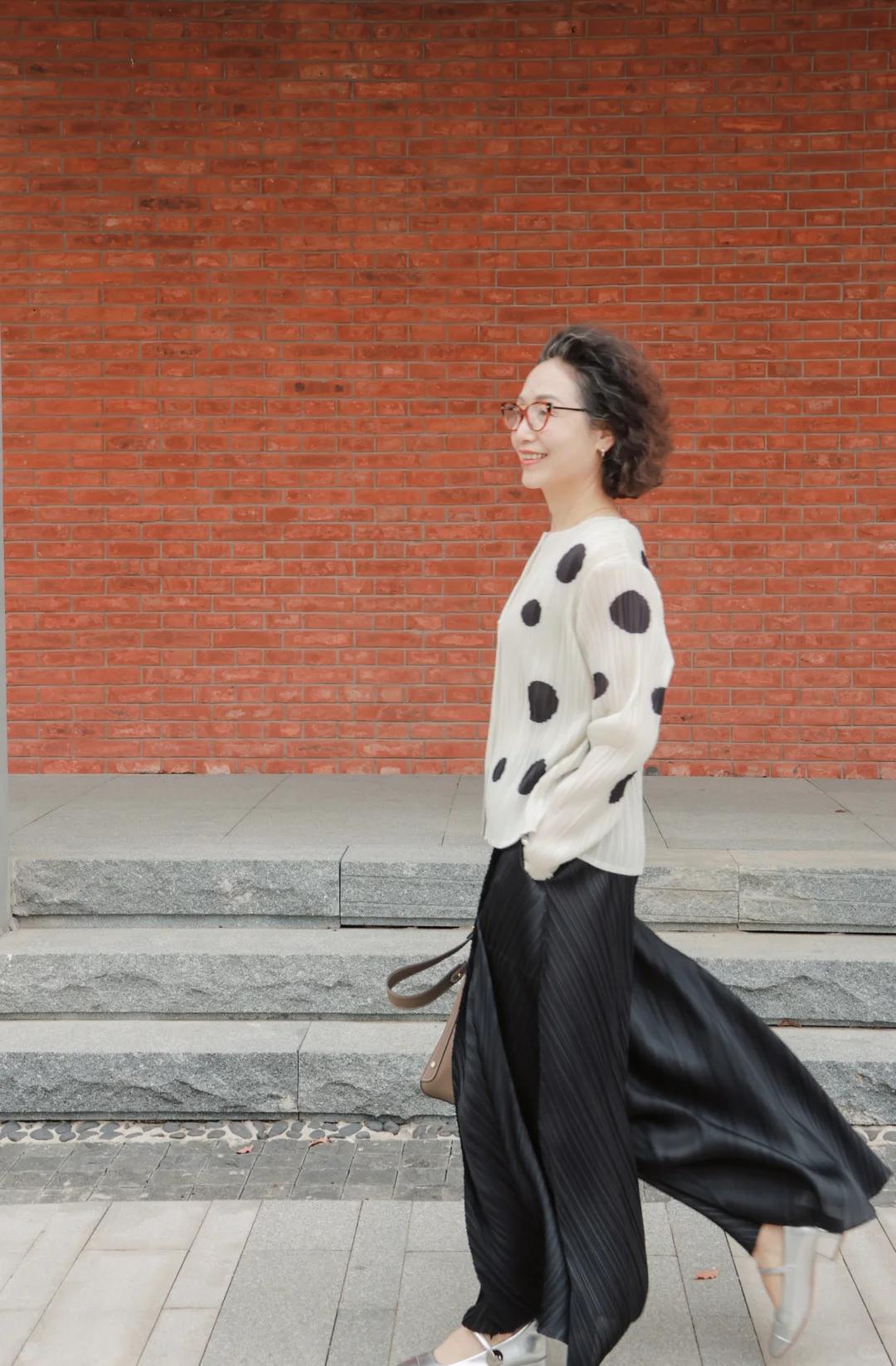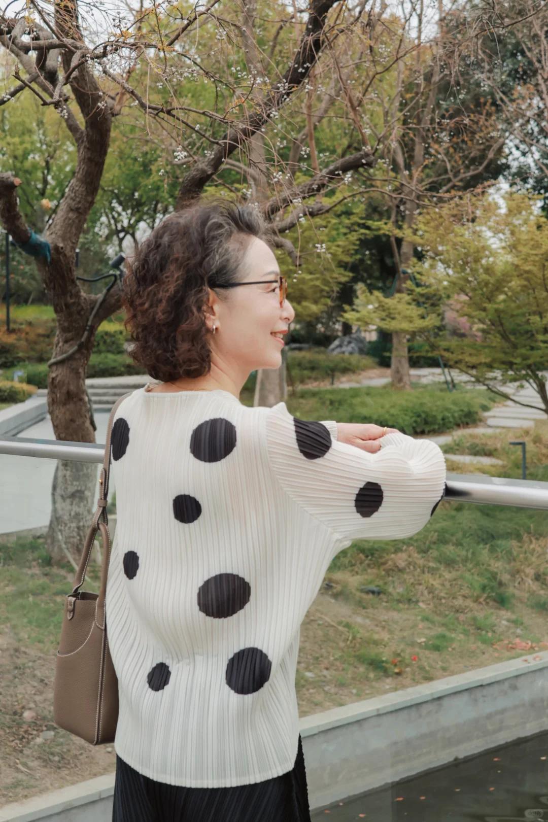 64岁穿搭|温柔波点+利落阔腿裤,松弛感藏不住✨ 64岁穿搭不追求刻意扮嫩,舒服又有气质才是王道👵🏻 今天这套太好看了!米白色波点上衣,温柔似水的底色,缀着灵动的黑色波点,像跳跃的小音符,瞬间打破沉闷~ 自带的褶皱工艺太加分,没有紧绷感,多了几分随性慵懒,不刻意、不费力的美,才是中年女人的底气。 搭配的黑色阔腿裤更是宝藏!垂坠质感拉满,上身轻盈又显瘦,宽大的裤型把腰腹、腿上的小肉肉都藏得严严实实,完美遮住岁月痕迹,走路都带风,尽显洒脱气场。 不挑场合真的太省心,清晨漫步公园,吹着风自在惬意;和老友相聚喝茶,大方得体又不抢镜,日常穿也完全无压力。 年龄从不是穿搭的限制,温柔与洒脱并存,64岁也能穿出自己的松弛感❤️