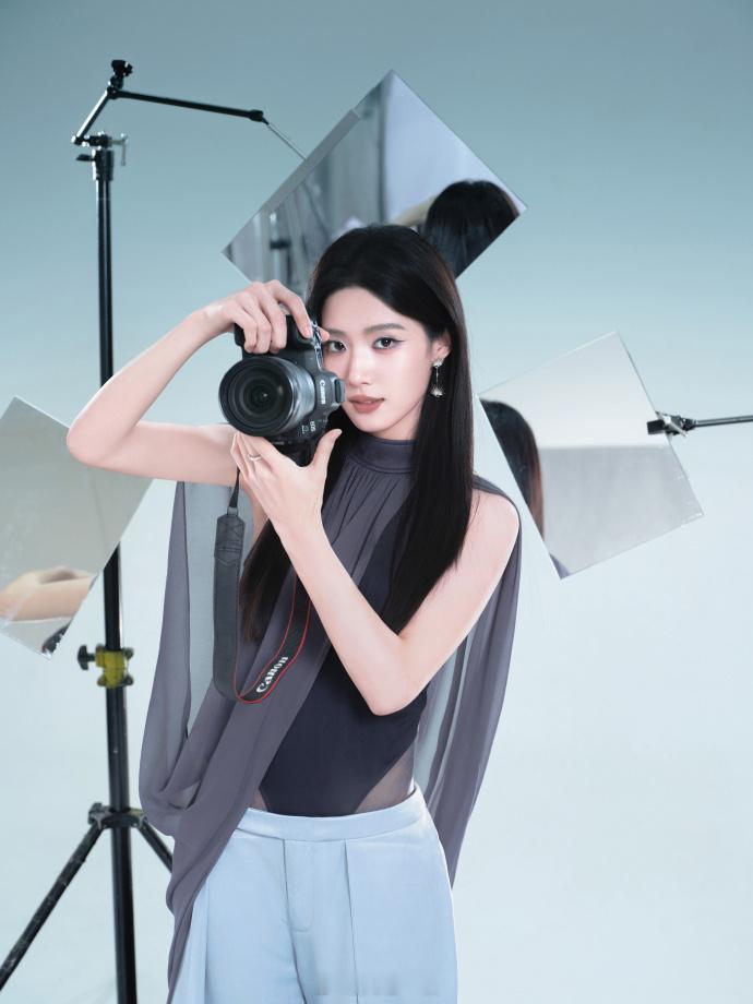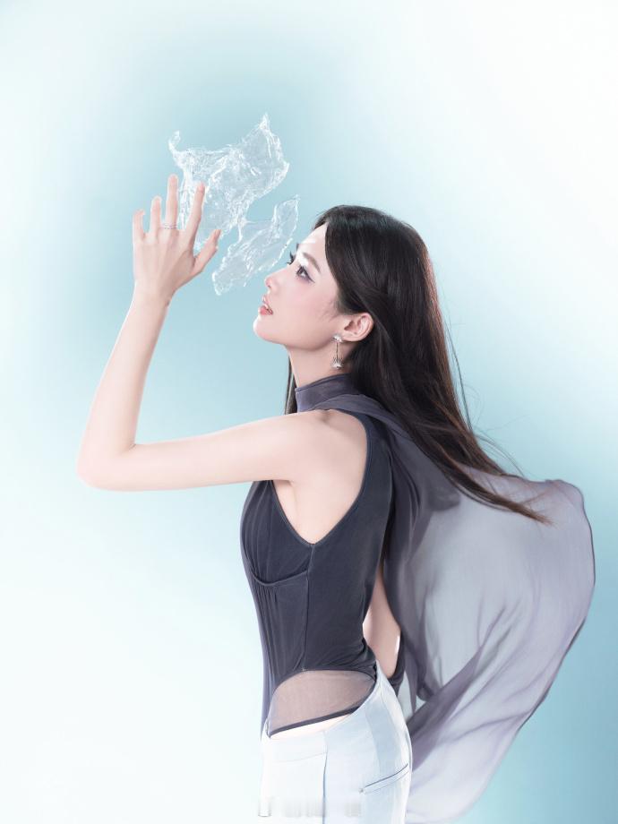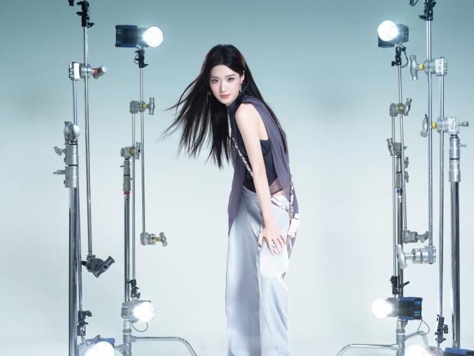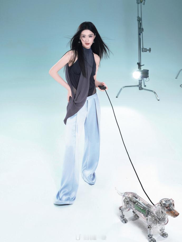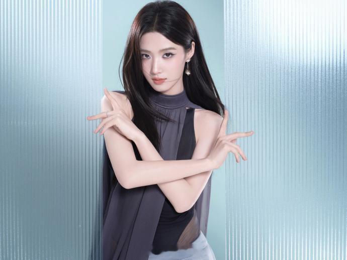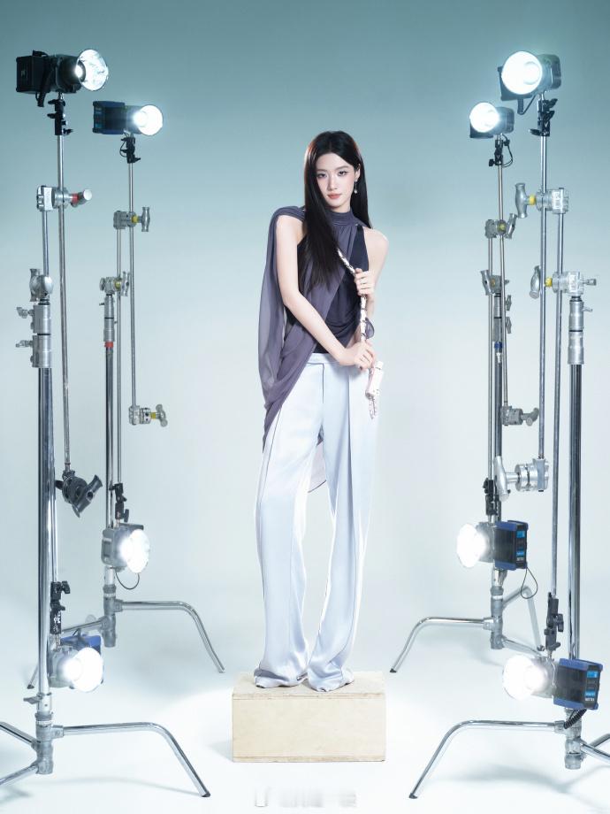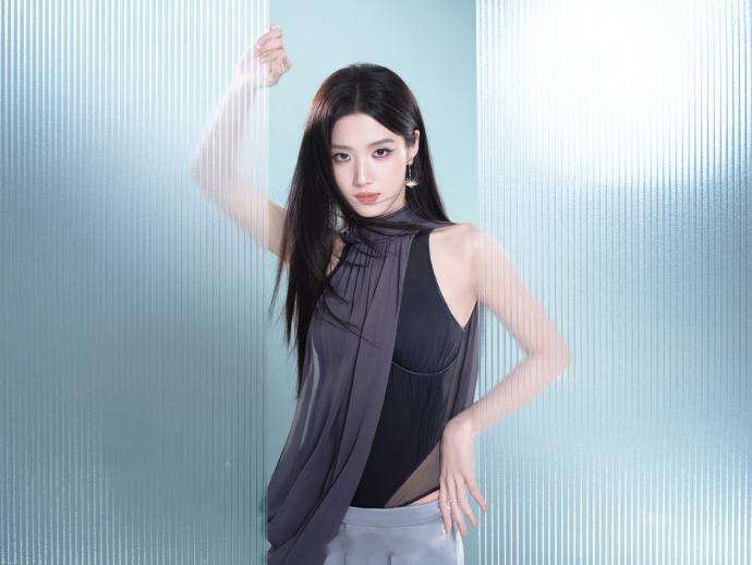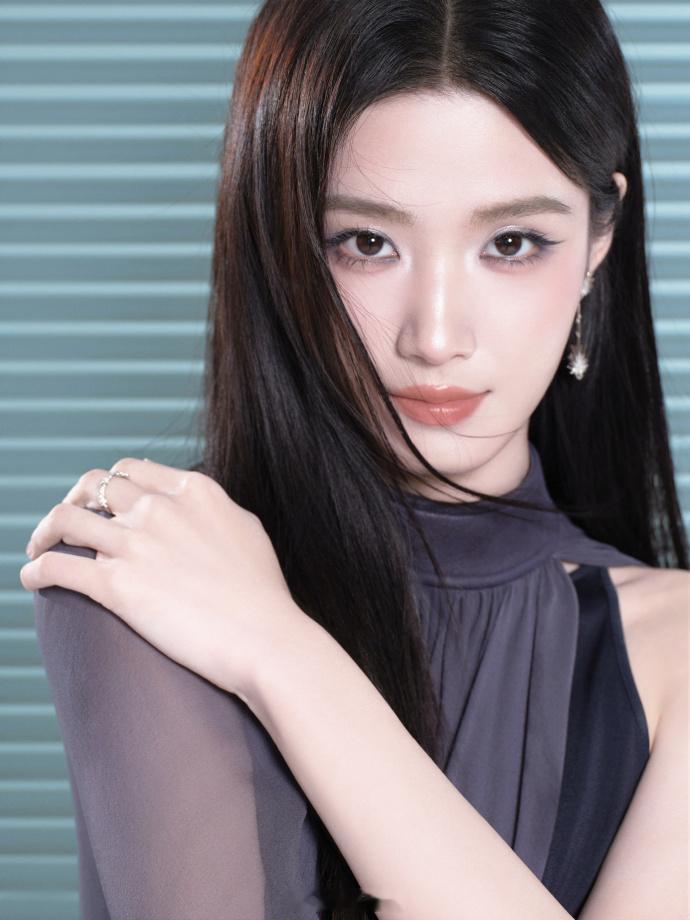 灰调挂脖套装,长发灵动眼神清冷——卢昱晓。每日明星美图分享
