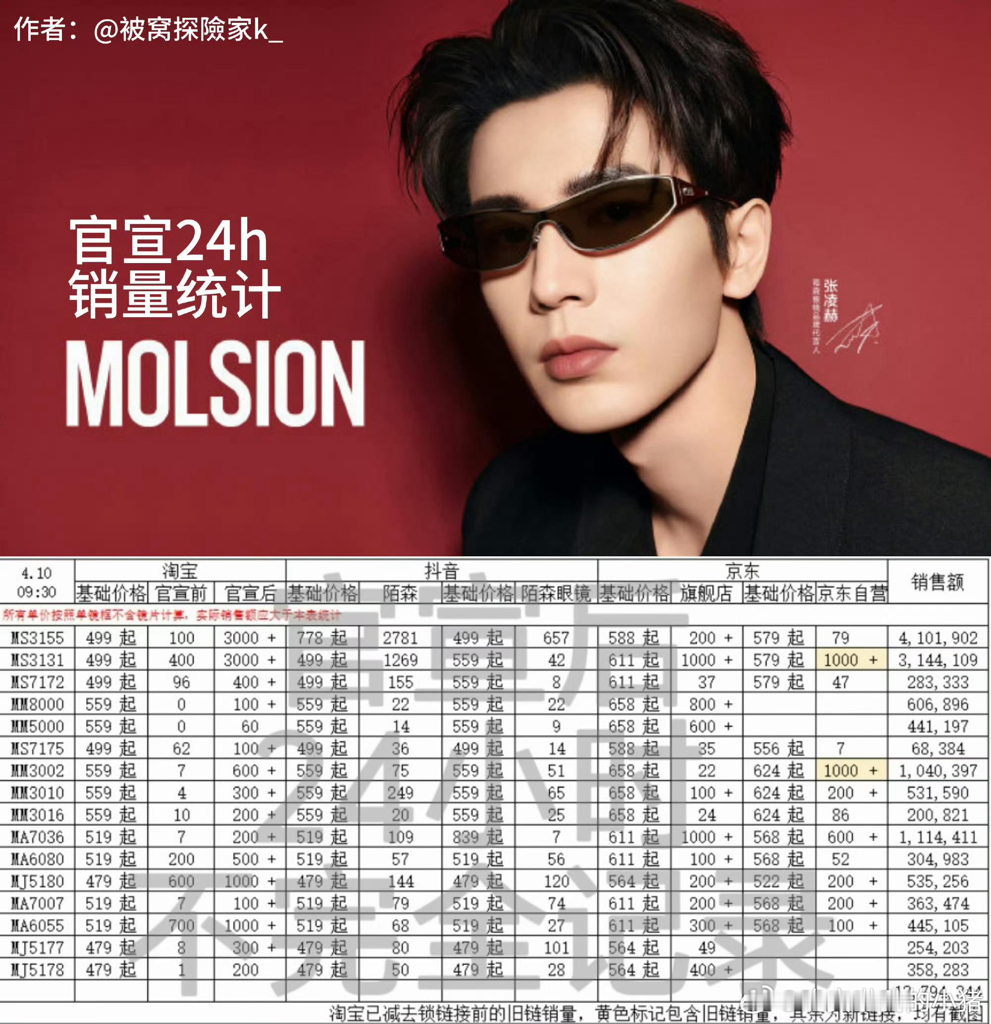 张凌赫陌森官宣24小时销售额,1380万+,线上线下均售罄🔥🔥