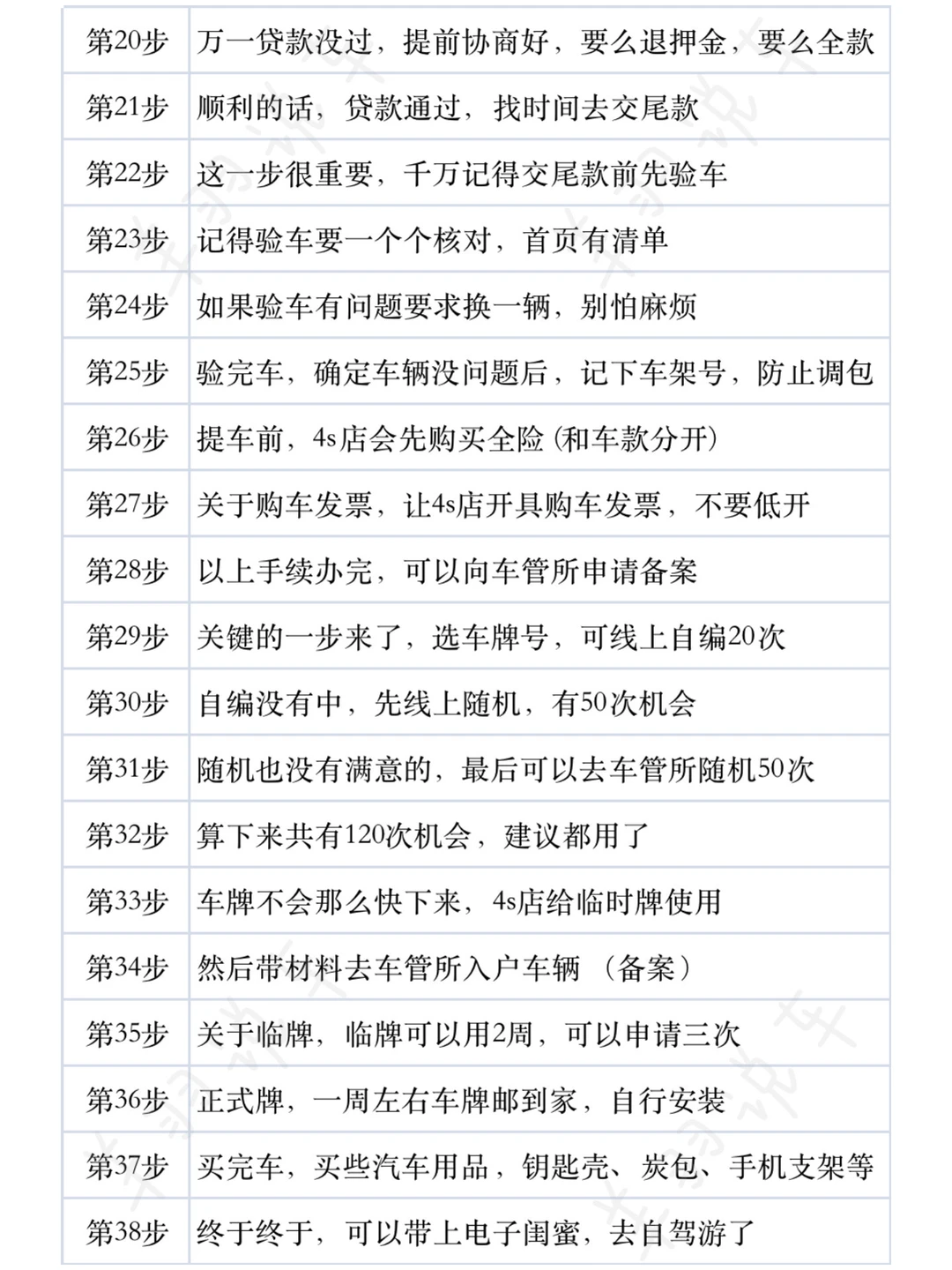 买车本身并不复杂 但如果流程搞错了 那么会有很多问题 接踵而至 关于买车的流程已经罗列很清楚了 但具体的细节问题 会在后续更新 包括以下部分 1⃣️买车应该如何砍价 2⃣️贷款买车的坑 3⃣️车险应该买哪些 4⃣️购车合同怎么签 5⃣️买车要什么赠品 6⃣️关于验车问题 7⃣️关于提车必拿的证件有哪些 希望姐妹都能遇到心仪的车车