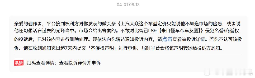 上汽大众这个车型定价只能说他不知道市场的险恶,或者说他还幻想活在过去的光环当中。市场会给出答案的。敢不敢对比智己LS9?微头条被投诉,实在想不明白这也能投诉。我想应该是这样,上汽大众ID ERA 9X要做的事情,就是性价比超越理想L9,问界M9,不考虑智己L9,因为他的性价比太高了,销量和影响力没有问界和理想的影响力大,所以暂时只考虑抢理想和问界的市场, 大众ID ERA 9X并不是要做性价比最高的,要的就是比影响力大的车型性价比高。就像奇瑞QQ,不考虑名爵4和极狐T1,只考虑比吉利星愿配置价格更有竞争力就行。是这样的逻辑吗?但是,为啥要投诉我呢?