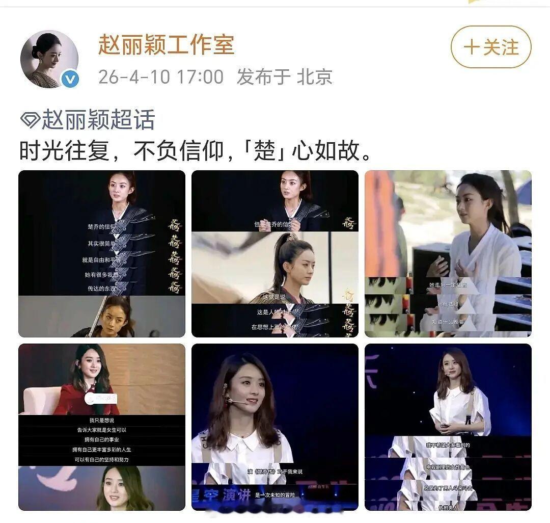 赵丽颖工作室发了回顾拍楚乔传期间的一些访谈。随后《冰湖重生》官微发微博:人前体面人,人后做人难,谁还没两幅面孔呢?