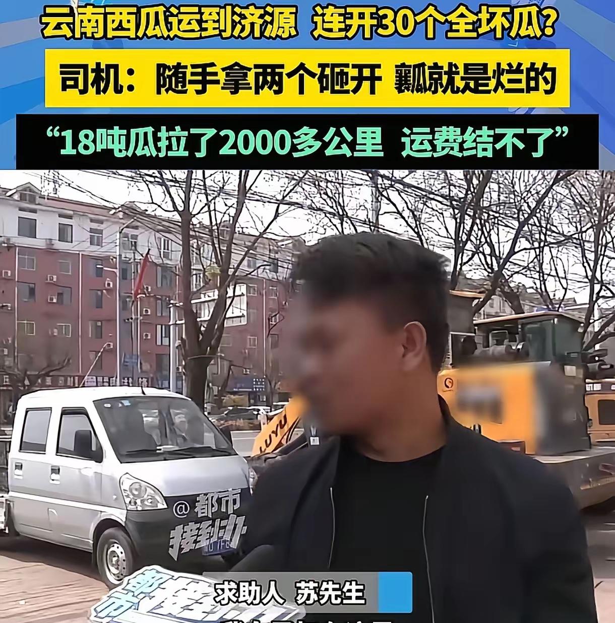 男子从云南运了18吨西瓜到济源,可收货方一检查,连开了30个瓜,外面都是好好的,可里面的瓤都是坏的,说什么都不肯结算运费了。男子的车也走不了,联系发货方,发货方却说如果对方不收,那就让男子把西瓜拉走顶运费。男子傻眼:这都是坏了的瓜,我拉去卖给谁,猪都不吃。 苏先生是一名货车司机,3月30日晚上,他接了个从云南西双版纳运18吨西瓜到河南济源的订单,对方承诺到目的地后结算运费。 接订单的时候,苏先生特意跟货主确认了运输要求,全程冷链温控,保证西瓜新鲜,运费一万三千块,货到付款。他跑货运快七年,拉过无数趟生鲜,知道这种时令瓜果耽误不得,接了单就立刻赶去装货点,看着工人把西瓜一箱箱搬上车,打好冷,当天夜里就出发了。 从西双版纳到济源,全程两千一百多公里,苏先生一个人连轴开,饿了就啃两口面包,困了就在服务区眯二十分钟,连口热饭都没顾上吃。就怕路上耽误时间,西瓜出问题,全程盯着温控仪,车厢温度一直稳定在要求的区间,行车记录仪拍得清清楚楚,没出一点差错。 4月2号早上,他准时把车开到了济源的水果批发市场,收货方老板带着工人过来验货。刚打开车门的时候,西瓜的表皮都好好的,绿油油的,带着新鲜的瓜藤,看着一点问题都没有。可老板随手挑了一个切开,里面的瓜瓤已经发灰发酸,彻底倒瓤了。 老板当场变了脸,又连着开了29个,不管大的小的,表皮看着多新鲜,里面全是坏的,没有一个能正常售卖。老板当场就说,这批货他肯定不能收,更不可能结运费。他说自己付了钱买瓜,结果收到的全是废品,损失已经够大了,运费不可能再出。 苏先生当场就急了。他只是个拉货的,只管把货安全准时送到,西瓜是发货方装的,好坏他根本没法一个个切开检查。他当场给云南的发货方打了电话,把情况说了一遍,可发货方直接甩了锅,说货已经交给他了,出了问题就是他运输不当造成的,收货方不收,就让他自己把西瓜拉走,抵那一万多的运费。 这句话直接把苏先生逼到了绝路。18吨已经坏了的西瓜,别说卖钱,白送都没人要,连附近的养殖户过来看了一眼,都摇着头说,这瓜坏得太彻底,猪都不吃。他的货车还停在批发市场的档口,每天都要交停车费,西瓜在车厢里一天天烂得更厉害,刺鼻的酸味飘得老远,市场管理都过来催了好几次,让他赶紧把车开走处理。 他就这么在市场耗了整整三天,吃住都在不足两平米的驾驶室里,晚上翻来覆去睡不着,想着家里上学的孩子,等着钱买药的老人,还有这一趟搭进去的八千多块油费和过路费,一个大男人,躲在车里偷偷掉眼泪。他报了警,找了市场监管部门,也给货运平台打了无数个电话,就想讨个说法。 2025年中国物流与采购联合会发布的全国货车司机权益保障调研报告显示,国内货运纠纷案件中,因生鲜货物质量问题引发的运费拒付纠纷占比高达47.2%,超六成货车司机都遭遇过货主之间互相推诿责任,把货物损失转嫁给司机的情况。绝大多数货车司机没有能力和时间走漫长的诉讼流程,最后只能自认倒霉。 经过民警和市场监管部门的多次调解,发货方和收货方最终各承担了一部分责任,收货方承担了苏先生的油费和过路费,发货方补了他一半的运费。烂掉的18吨西瓜,苏先生自己找了垃圾处理厂,花了两千多块钱,才全部清运处理掉。 这一趟跑下来,熬了两天两夜没合眼,担惊受怕了一路,最后不仅没赚到钱,还倒贴了不少。很多货主都觉得,货车司机拉了货,就要对货物负全责,可他们忘了,司机的职责是安全运输,不是为货主的采购失误和货物本身的质量问题买单。货车司机跑长途,赚的都是辛苦钱,不该成为买卖双方纠纷里的冤大头。 各位读者你们怎么看?欢迎在评论区讨论。