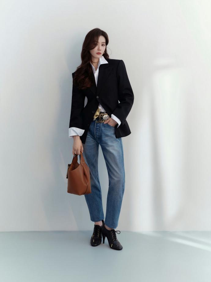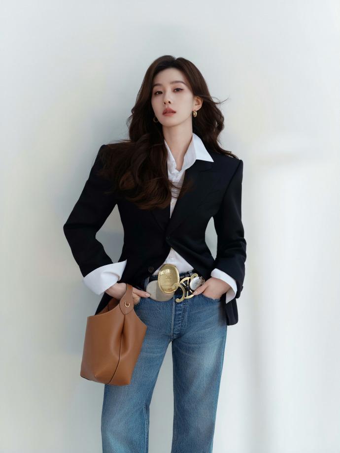今天刘诗诗在出席时尚活动的时候走经典的黑白搭配风格,看上去很有气质。 刘诗诗里面穿白色衬衣,外面套着黑色的西装,两件衣服叠穿的效果很出众。 她下身搭配了一件做旧风格的牛仔裤,腰间扎着宽大的金属腰带,尽显奢华之美,真的太迷人了。 刘诗诗脚踩黑色的高跟鞋,个子变得非常高挑,确实是特别的有魅力。 她还留着超美的披肩长发,染着红色的嘴唇,画着浓浓的眼妆,拎着咖啡色的包包,确实是太美了。