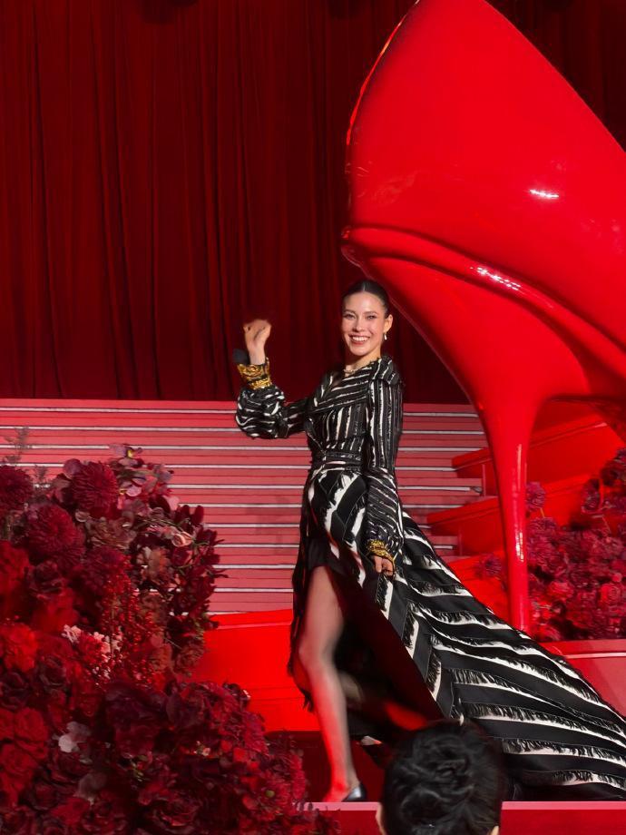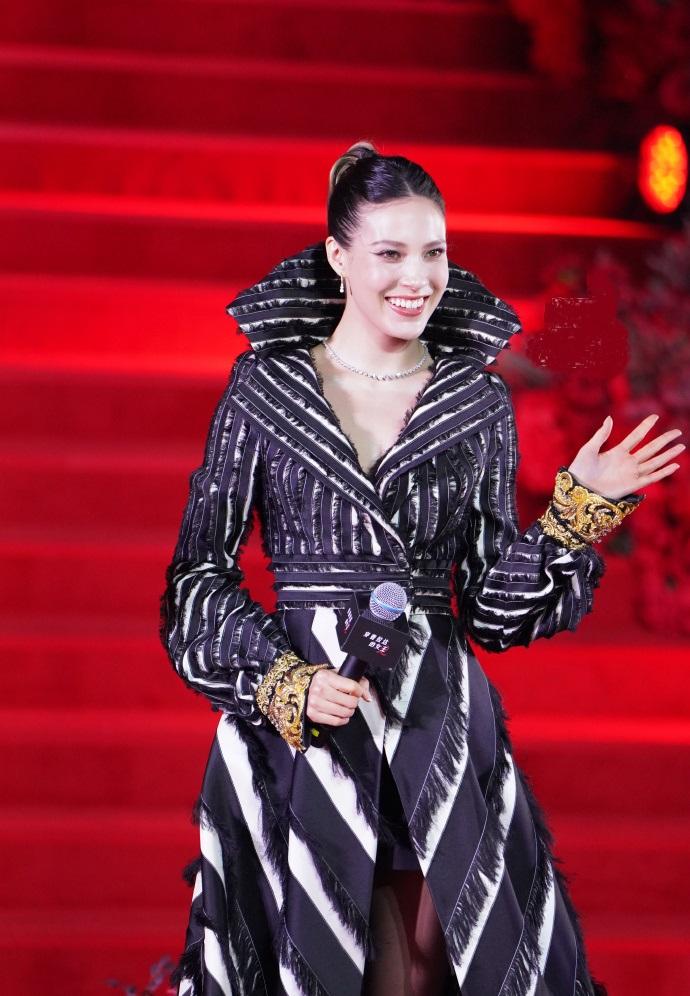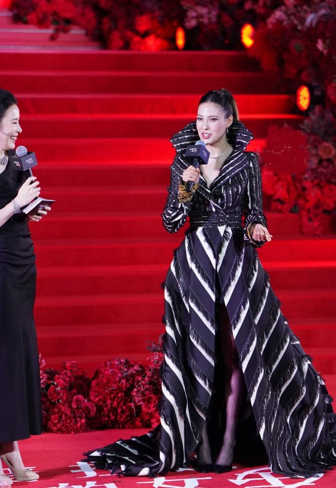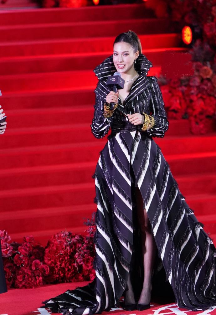 今天谷爱凌和周也在上海出席时尚活动,两位搭配的都很靓丽,谷爱凌这回穿的很有个性,看上去气场超强。 谷爱凌穿了一件宽大的条纹裙,脚踩黑色尖头高跟鞋,确实是太有气势了。 她这次特意拉高了腰线,还秀出了苗条的细腰,同时凸显出了完美的身材比例。 谷爱凌穿的裙子的袖口处有金色的装饰,增添了华丽感,让她颇具女王范儿。 她绑着时尚的马尾辫,还画着浓浓的眼妆,脖子上戴着银色的项链,真的是太靓丽了。