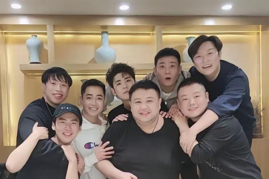 德云社成员聚会合影:我一眼就认出了前排身宽体胖、喜容绽放的孙越,方颐大耳、气色盈和的岳云鹏,戴着帽子、眉欢眼笑的郭麒麟;后排只认出了刘海遮眉的朱云峰,眉清目秀的孔云龙,英武帅气的张云雷,那位张眉努眼、嘴巴大张的是曹鹤阳吧?右一梳着斜刘海、戴着眼镜的白面男是谁?