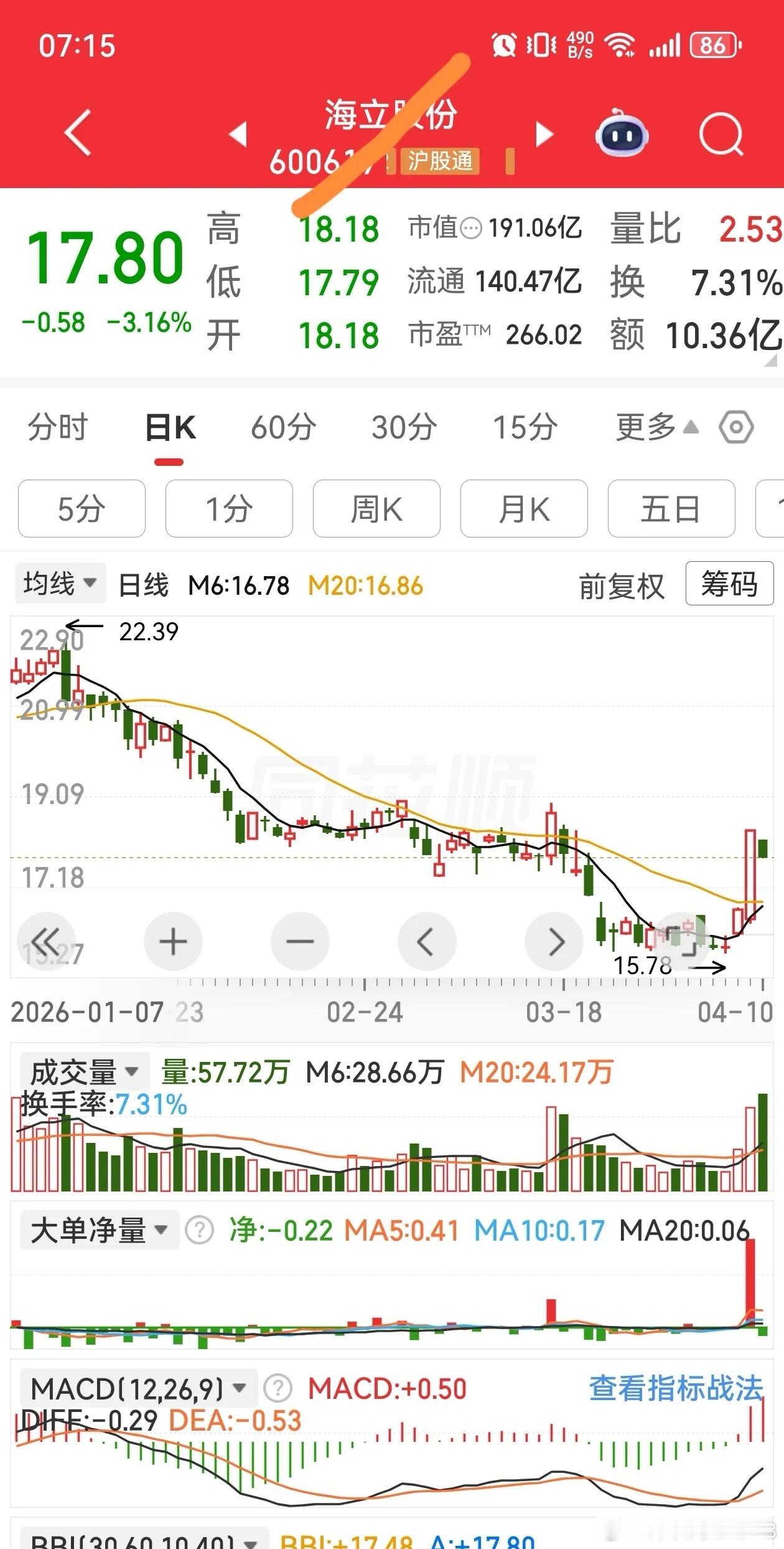 20日均线刚刚拐头向上。交投重新活跃,又开始堆量了。