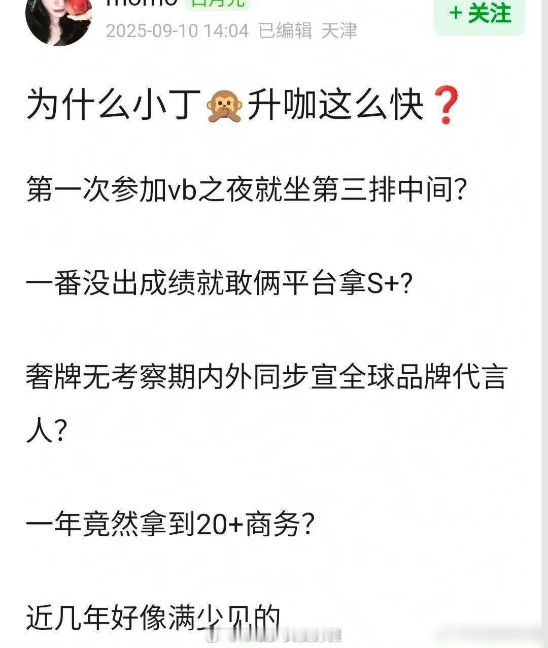 瓣友问:为什么丁禹兮升咖这么快?一年拿到20+商务,近几年好像蛮少见的