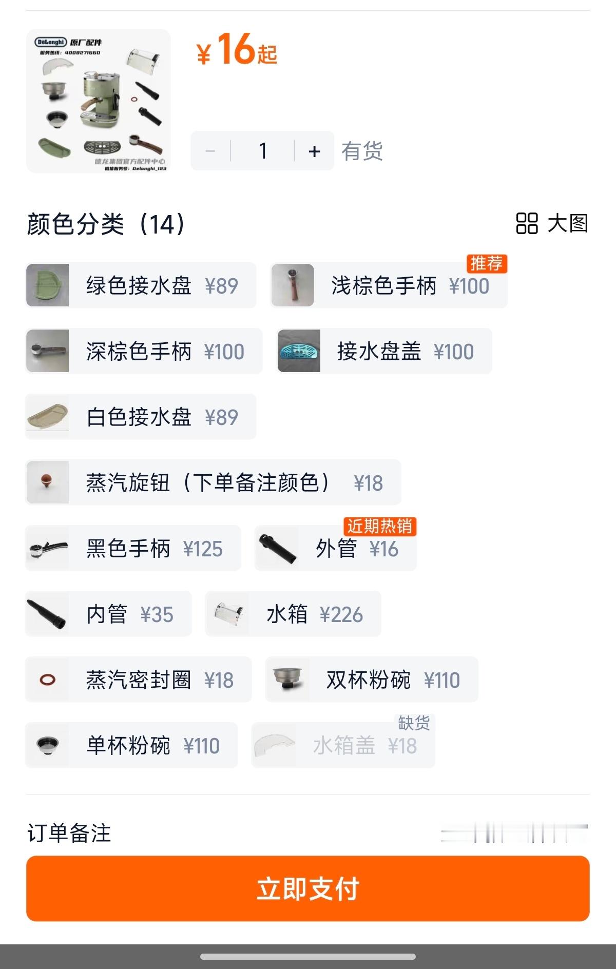 洗碗机干废了手柄,这是铝制的还是镀膜哇?才知道德隆咖啡机配件价格那么高,水箱22