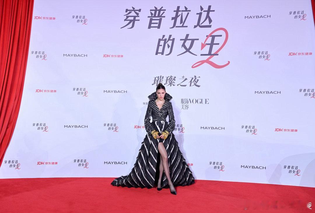 她参加了《穿普拉达的女王2》中国首映礼,一袭Guo Pei 2017秋冬高级定制系列黑白大衣裙装亮相,女王范儿十足!