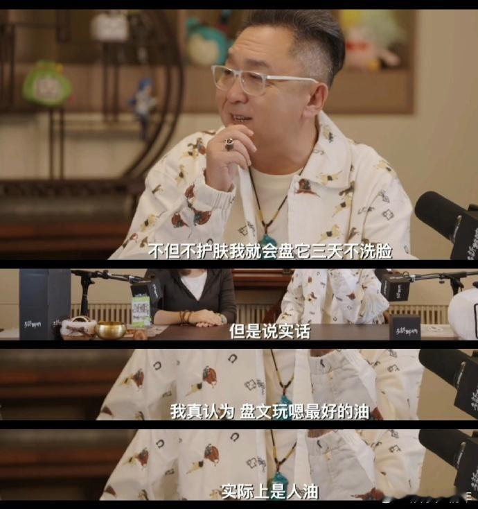 原来真的有人盘手串不洗脸北京大爷有自己的阿贝贝盘串圈的冷知识又增加了,于谦用亲身实践证明,人油养串效果绝佳,宁愿三天不洗脸也要把串盘得油光水滑,手串在他眼里就是贴身的阿贝贝,这份偏爱太真实。