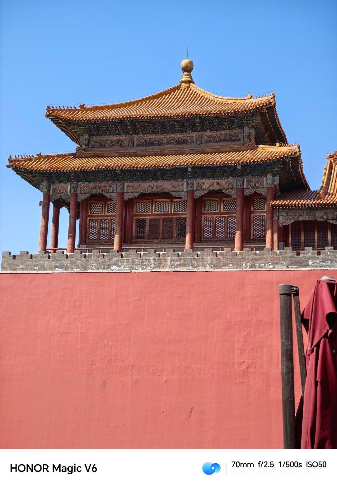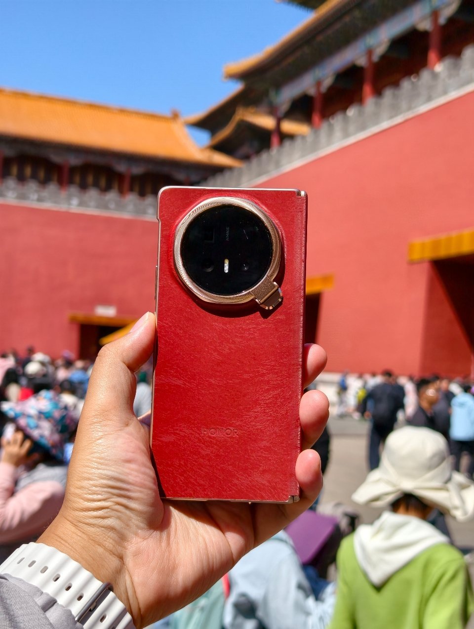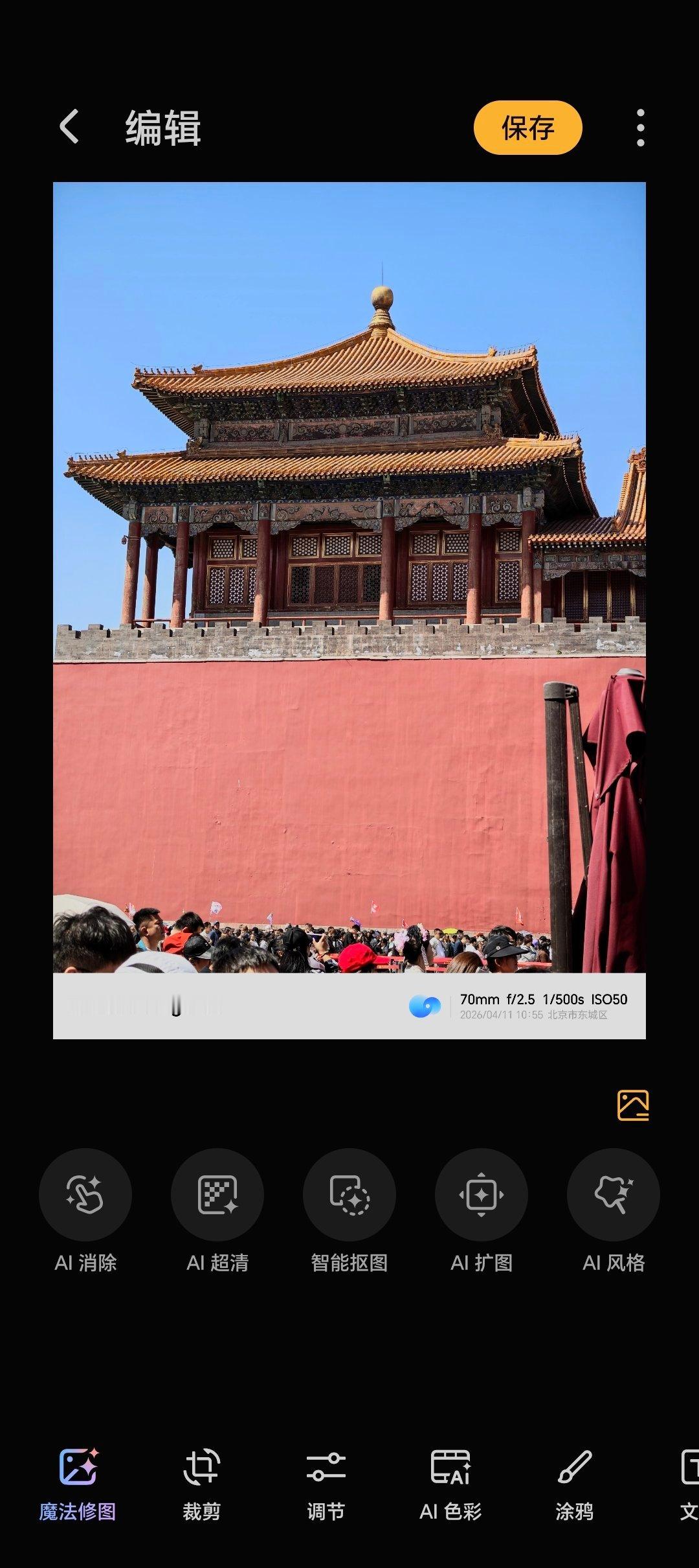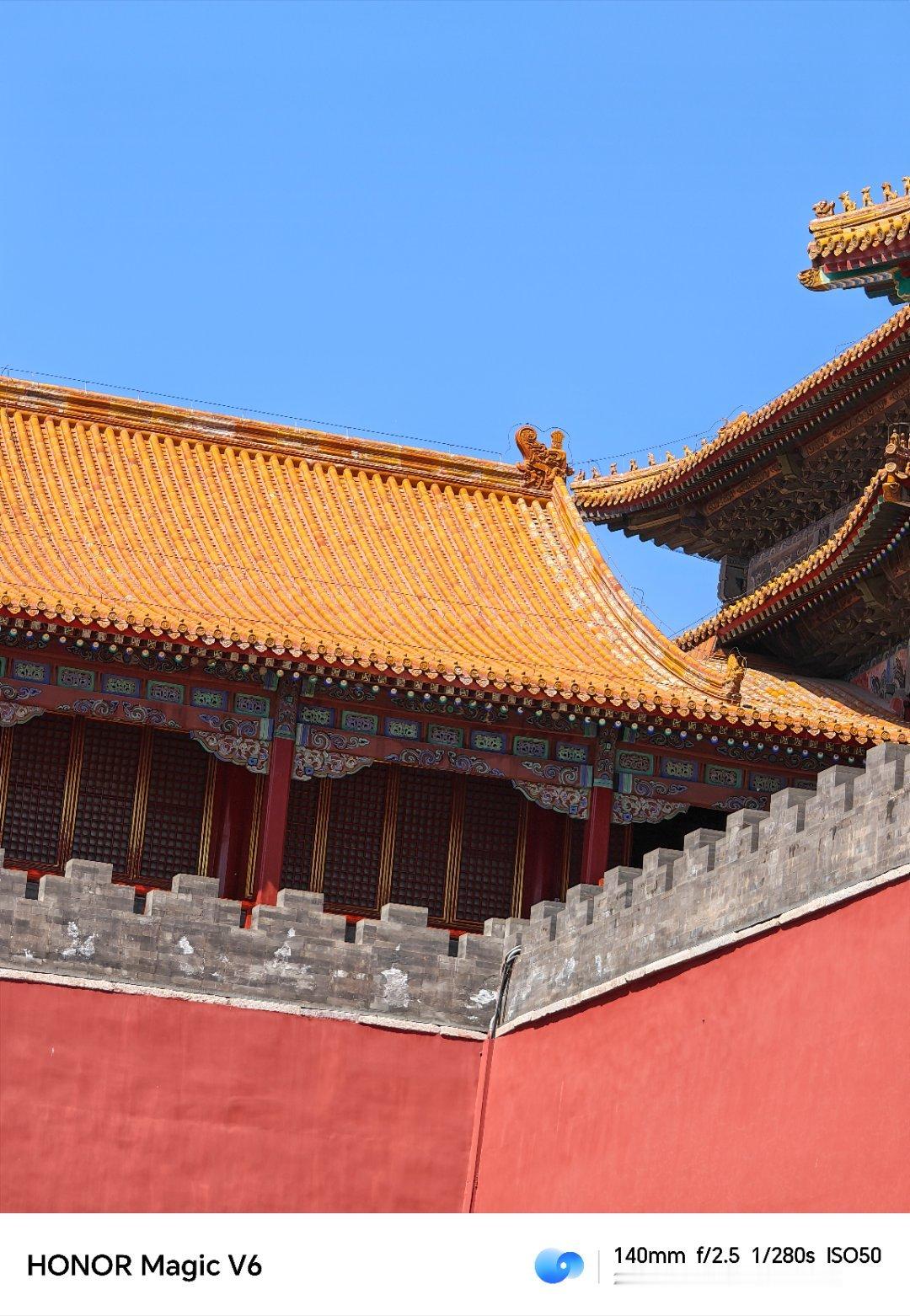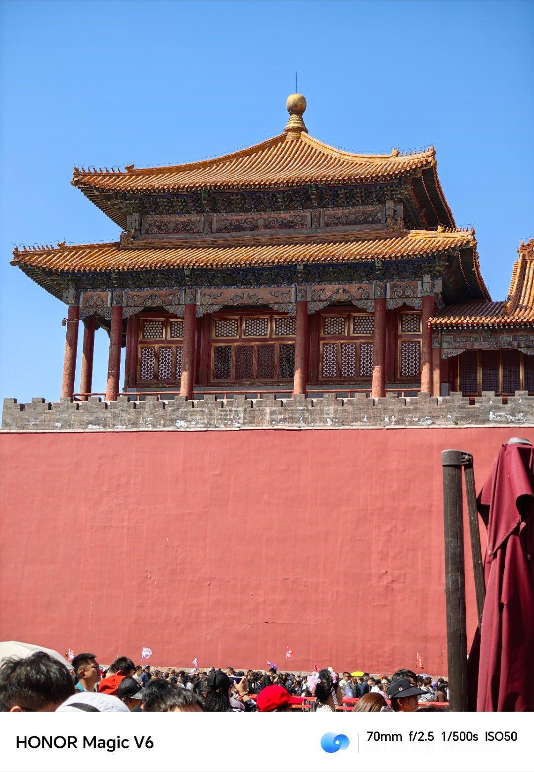 到了故宫,情不自禁掏出我的荣耀Magic V6张雪同款的赤兔红配色,和故宫的红墙多少有点异曲同工之妙。有一说一,荣耀的影像水准,目前属于完全够用的级别,这还是荣耀折叠屏手机的水准周末人实在太多,图7的图片我用MagicOS自带的AI消除,瞬间搞定,效果可以看图7