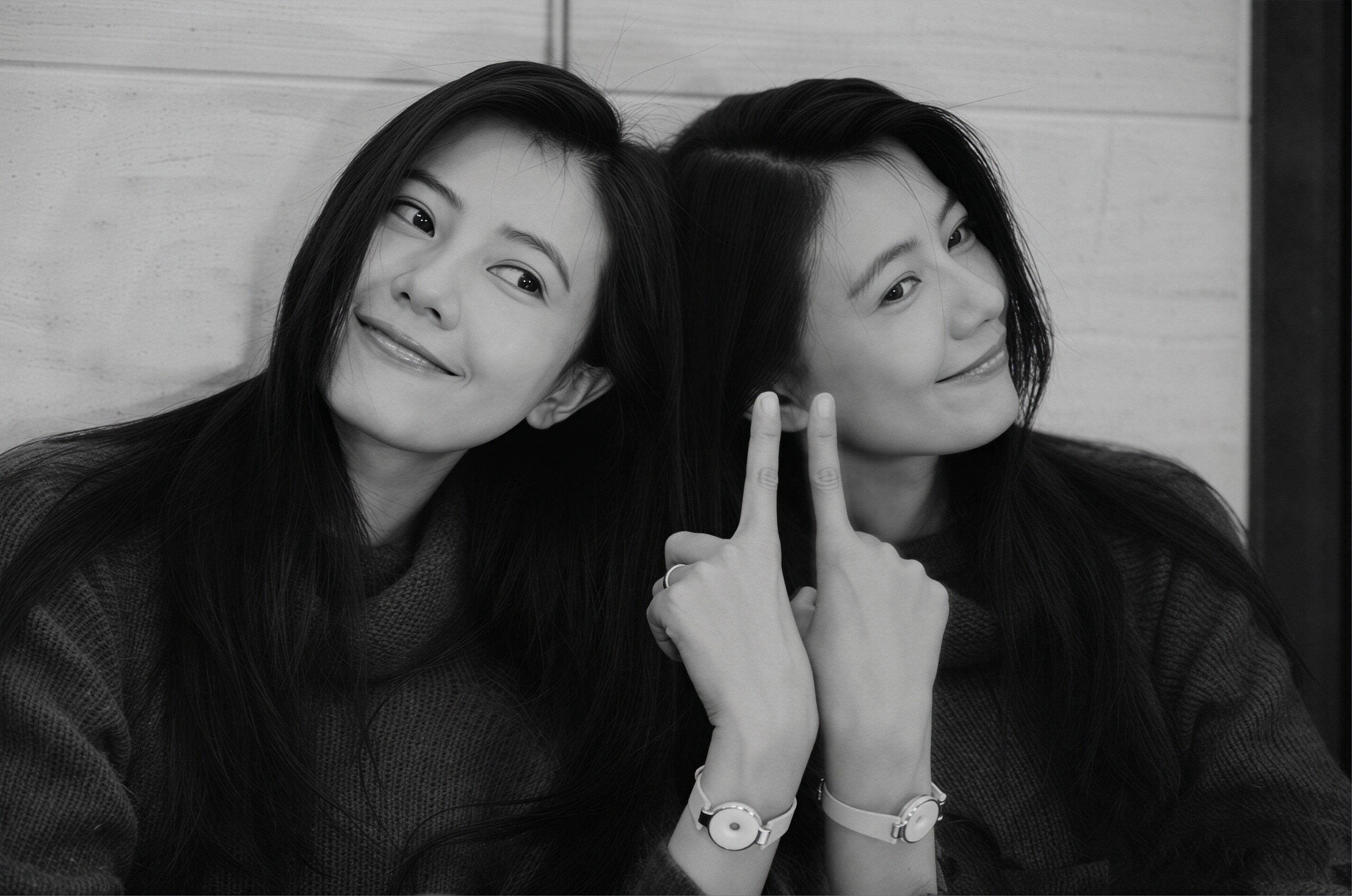 谁能拒绝这种松弛感拉满的状态啊!黑白色调里,姐姐的笑直接暖到心坎里,连比耶的手势都透着灵动劲儿,这状态谁看了不喊一句“姐姐杀我”!