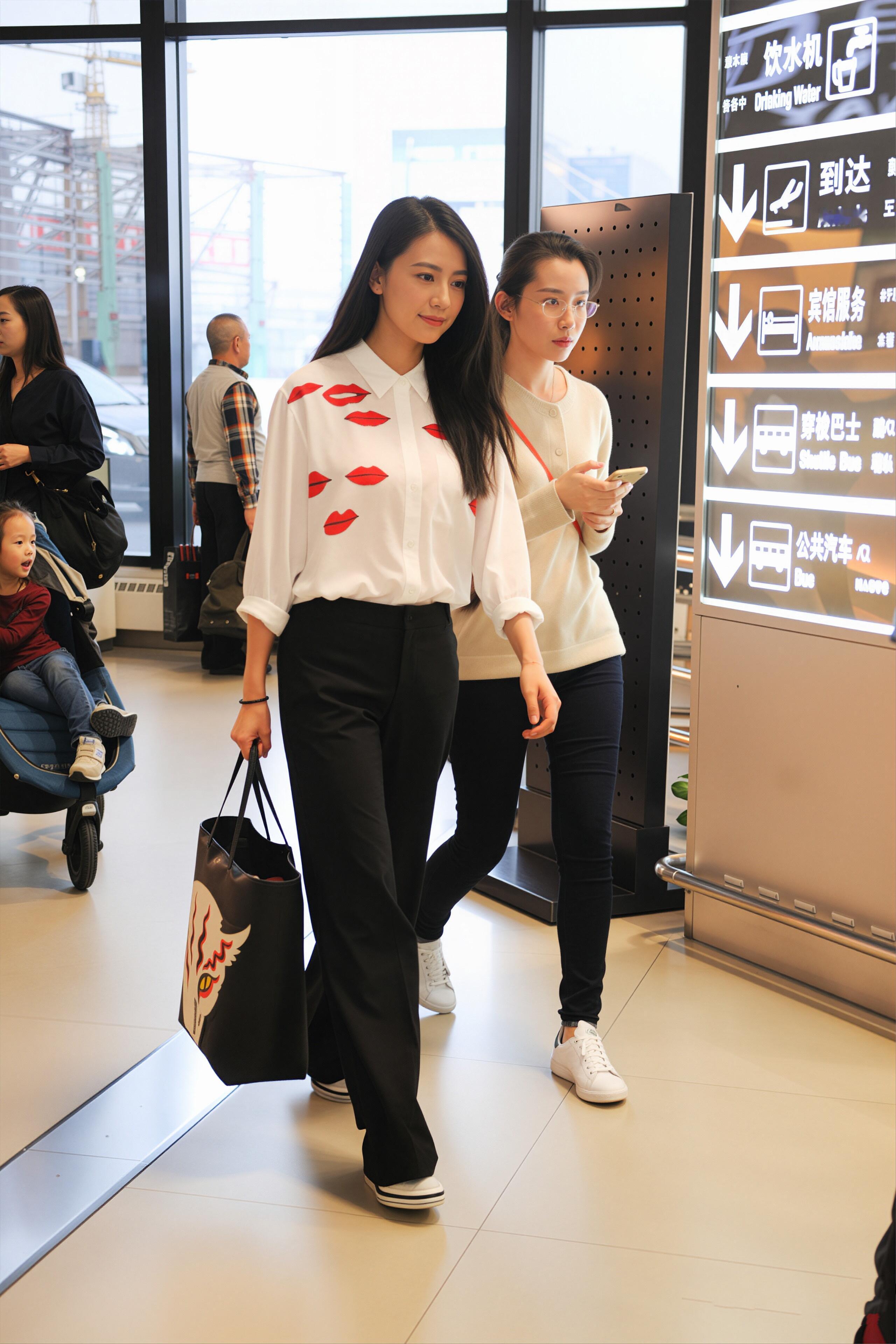 圆圆姐这组机场图真的狠狠共鸣了!白衬衫+黑阔腿裤+小白鞋,简约到极致却又气场拉满,连走路都带风,这松弛感真的是刻在骨子里的!