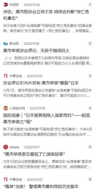 为什么现在日本越来越猖狂?一位日本老人一语道破:“日本之所以敢跟中国叫板,说到底,就是赌徒心理,赌赢了,一步登天,赌输了,大不了缩回岛上。” 甲午战争如此,二战也是如此,岛国惯性思维,以为世界的一切不会变,有一次,二次也一样。 麻烦看官老爷们右上角点击一下“关注”,方便您进行讨论和分享,感谢您的支持! 2025年11月7日,刚当上日本首相没多久的高市早苗,在国会众议院预算委员会上放出狠话。她说如果中国大陆对台湾动手,可能构成日本可以行使集体自卫权的“存亡危机事态”,暗示日本自卫队可能会武力介入。这可不是什么模糊表态,这是1945年以来日本领导人第一次在正式场合把“台湾有事”跟日本出兵直接挂上钩。消息一出,国内国外全炸了锅。 中方反应非常快。11月13日,外交部副部长孙卫东直接把日本驻华大使叫过去,当面提严正交涉。第二天,驻日大使吴江浩也约见了日本外务省的高官,措辞非常严厉,说这是“战争叫嚣”。然而日本那边不认账,还在内阁答辩书里打太极,说“立场未变”。但谁都知道,话都说出口了,哪有什么立场没变。 就在这个节骨眼上,网上流传起一位日本老人的评论,把这事儿说透了。他说,日本之所以敢跟中国叫板,说到底就是赌徒心理。赌赢了,一步登天;赌输了,大不了缩回岛上。甲午战争这么干的,二战也是这么干的,现在还是这套思路。岛国那点破事,总以为世界永远不变,以为赢了就能翻身,输了也没什么代价。 这话有没有权威出处先放一边,但它确实把日本那股子劲儿说得明明白白。从高市早苗的发言到最近的军事动作,日本这股“赌性”表现得越来越明显。历史已经证明过两次这种冒险的后果了,可他们偏偏觉得这次不一样。 日本这些年可没闲着,尤其是西南方向的军事部署,一步比一步快。2025年11月25日,防卫大臣小泉进次郎亲自跑到琉球群岛视察,公开宣布与那国岛要部署03式中程防空导弹。这个岛距离台湾只有110公里,离钓鱼岛也就150公里。岛上早就驻着电子战部队和雷达监控设施,导弹一上岛,那针对性就太明显了,简直把枪口顶到了中国家门口。 不光是在岛上装导弹。高市一上台就推动把防卫预算提前提高到GDP的2%。本来这个目标是2027年才要达成的,结果2025年就做到了,一年花了差不多11万亿日元。2026年的预算还要再涨到9万多亿。钱从哪儿来?砸的全是老百姓的民生开支。不少日本学者都急了,说这简直是“不要黄油要大炮”。 日本政府扩军最紧张的其实是冲绳的老百姓。2025年11月14日,冲绳民众跑到国会大厦里集会抗议,冲着政府官员喊话:二战的时候我们这地方被打得多惨,难道还想再来一次吗?他们最怕的就是自己的家园变成战争的前线。 当天还有来自冲绳各地的230多人开了一场反战研讨会,大家都觉得政府以“台湾有事”为借口搞军备扩张,完全不考虑当地人的死活。政府把军队和导弹往岛上堆,老百姓却连睡个安稳觉都难。 面对日本的挑衅,中国这边也没含糊。外交上,中国外交部发言人毛宁11月26日在记者会上直接点明:日本政府说什么“一贯立场未变”,这远远不够。我们要确认的就是,你到底还坚不坚持一个中国原则? 经济上,中国打出了一套组合拳。宣布禁止所有两用物项对日本军事用户和军事用途出口。这还没完,中重稀土的出口审查也要收紧。稀土这东西对日本的高科技和军工产业有多重要,谁都清楚。这一下可掐住了日本的要害,让他们不得不掂量掂量。 军事上,国防部和解放军报多次警告,如果日本胆敢武力介入台海,必将迎头痛击,付出惨痛代价。 国际上,大多数国家还是坚持一个中国原则。最值得注意的是美国的态度。高市早苗话音刚落没多久,特朗普就跟中方通了个电话,在电话里说“美方理解台湾问题对中方的重要性”。这话跟以前那种“反对单方面改变现状”比起来,明显往后退了一步。而且美国国务院发言人在回答记者提问时,也有意跟日本右翼的立场拉开距离,没有公开支持日本。说白了,美国也不想被日本这个赌徒拖下水。 回头再看那位日本老人的话,真是越想越有道理。日本这些年在台湾问题上的小动作,从高市早苗的“存亡危机事态”,到与那国岛的导弹,再到提前完成GDP2%的防卫预算,说到底就是一场豪赌。赌的是中国会忍,赌的是美国会撑腰,赌的是自己能全身而退。 但他们忘了,甲午战争赌赢了,换来的是后来的膨胀和更大的灾难。二战赌输了,挨了两颗原子弹,半个世纪抬不起头。现在又想赌第三次?历史已经给出了答案,赌徒永远赢不了庄家。日本如果再不收手,最后输掉的,恐怕就不只是一个“缩回岛上”那么简单了。