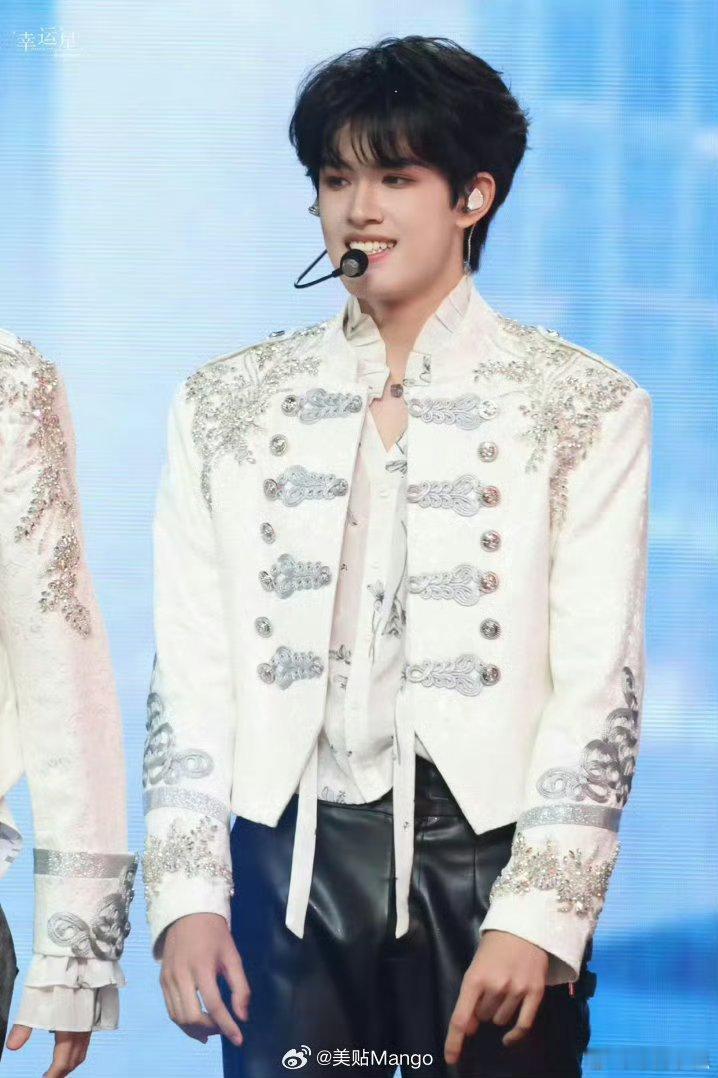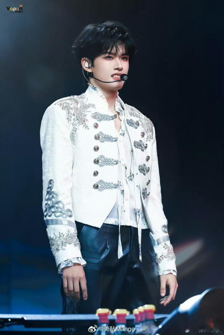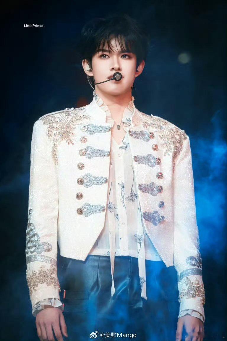 张极白色拿破仑夹克张极澳门演唱会身着白色拿破仑夹克,利落矜贵气场拉满,舞台存在感爆棚,少年贵气一眼沦陷。张极出场造型贵气小王子