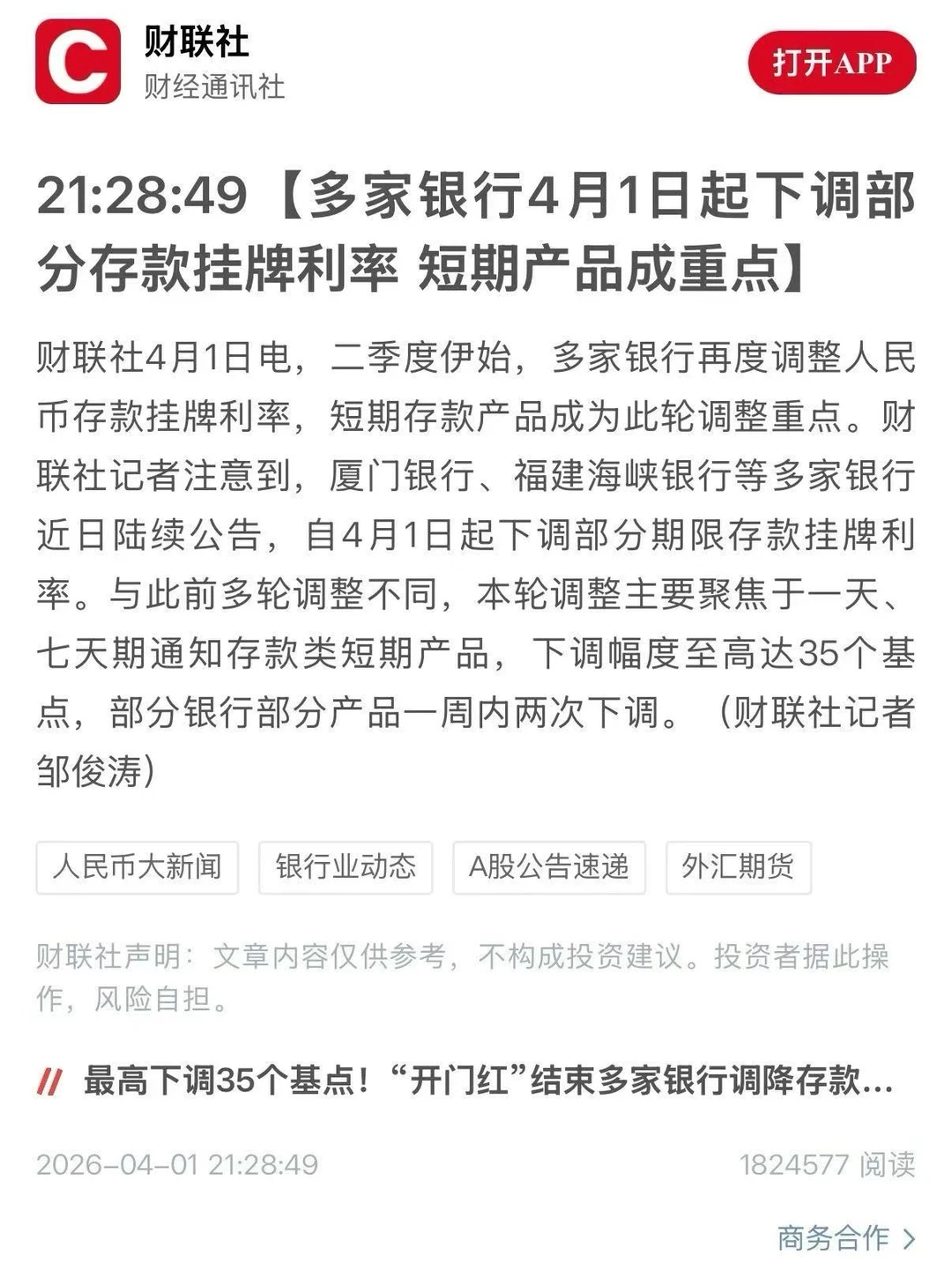 数十家银行密集降息说实话,我以前也想过跑去异地存款。但现在中小银行都破1了,这种折腾基本没意义了。存款特种兵也跑不动了我身边不少人已经换思路:不再死盯利率,而是把钱拆开:留一部分随时能用的,再放一部分稳的,另外拿一点做长期投资。环境变了,大家的解法也只能跟着变。