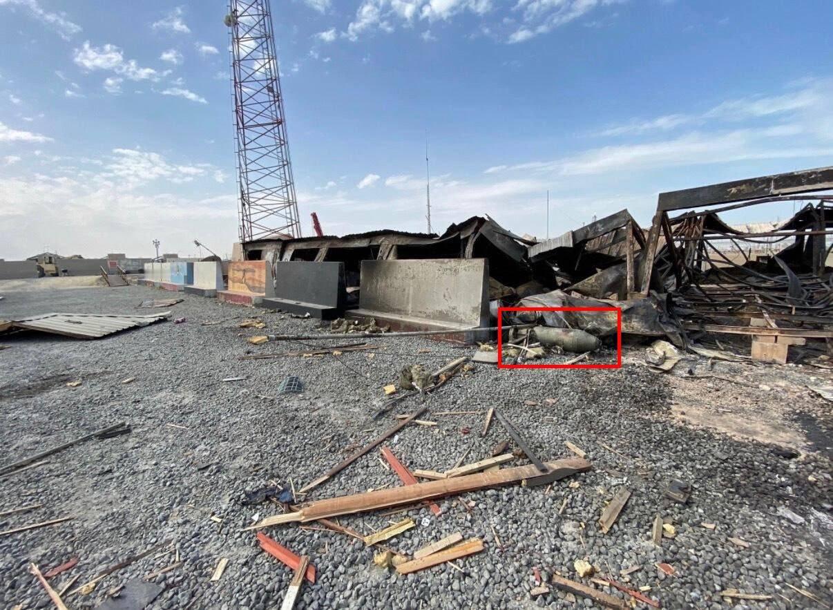 卡塔尔打捞被击落的伊朗Su-24战斗轰炸机残骸,这两架飞机于3月2日在阿拉伯湾水域击落,地点靠近卡塔尔空域。事实上在开展初期伊朗空军利用战斗轰炸机多次执行远距离投掷常规炸弹的任务,图3是位于科威特阿里夫詹营地战术作战中心遭打击的照片,该基地在开战第二天也就是3月1日被伊朗空军打击,确认共造成6名美军死亡,在废墟附近可以看到一枚苏联时代的FAB-500型无制导炸弹。