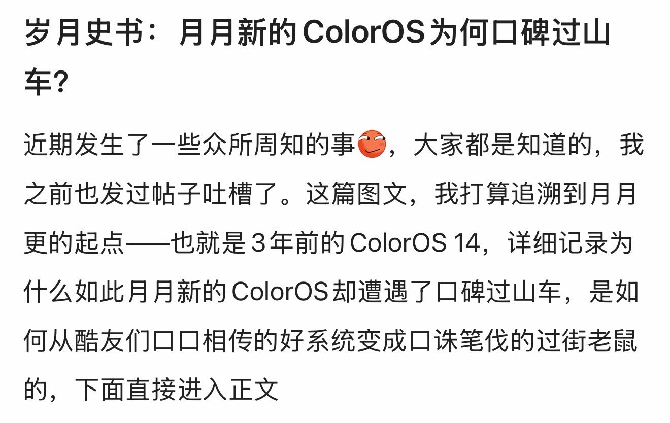 什么情况,简单刷了一下酷安,怎么全在骂ColorOS口碑不行了???虎哥你知道吗
