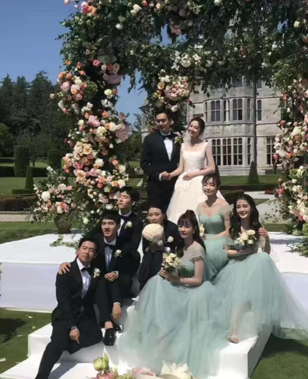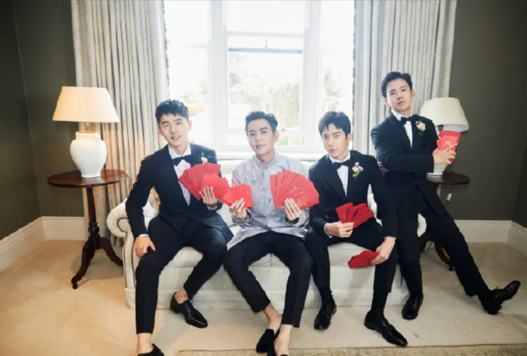 马思纯是婚礼的司仪,后来还抢到了捧花,伴郎是井柏然、刘昊然、郭麒麟,伴娘是宋茜、李沁、沈梦辰,大家都比较熟悉又能玩到一起,整场婚礼都非常温馨浪漫[飞吻R]