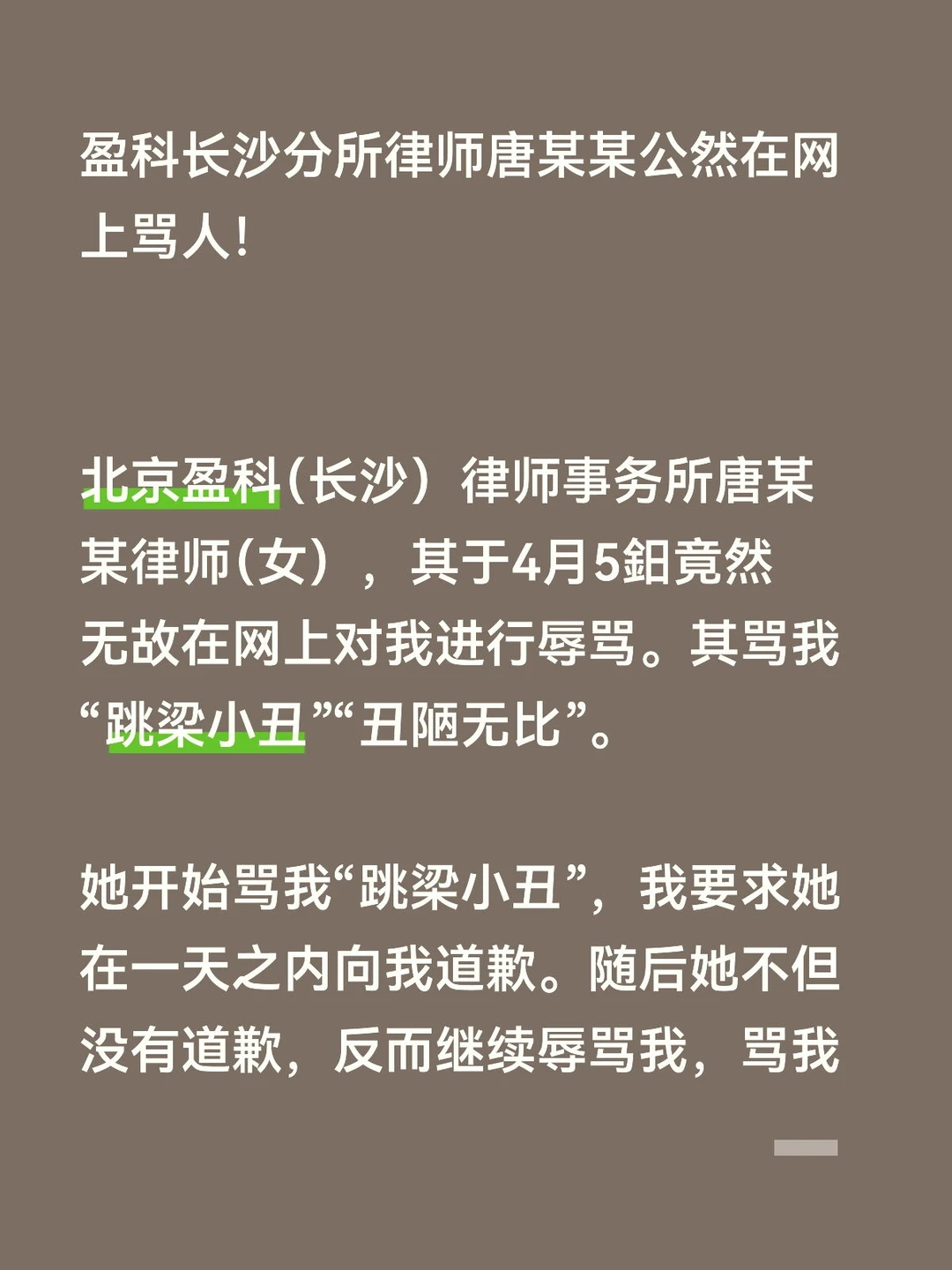 盈科长沙分所律师唐某某公然在网上骂人!