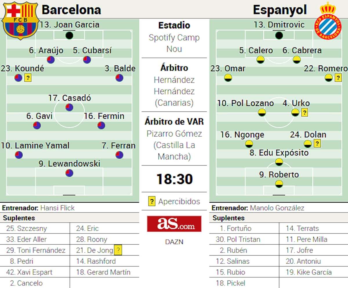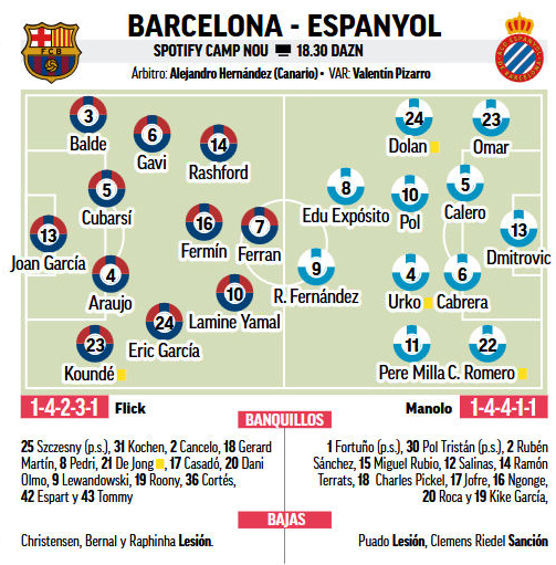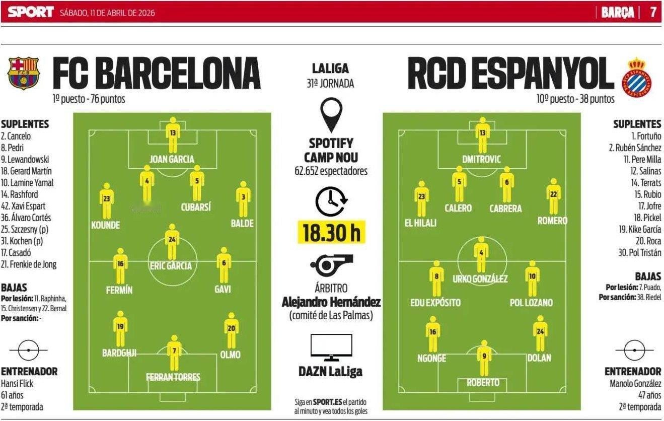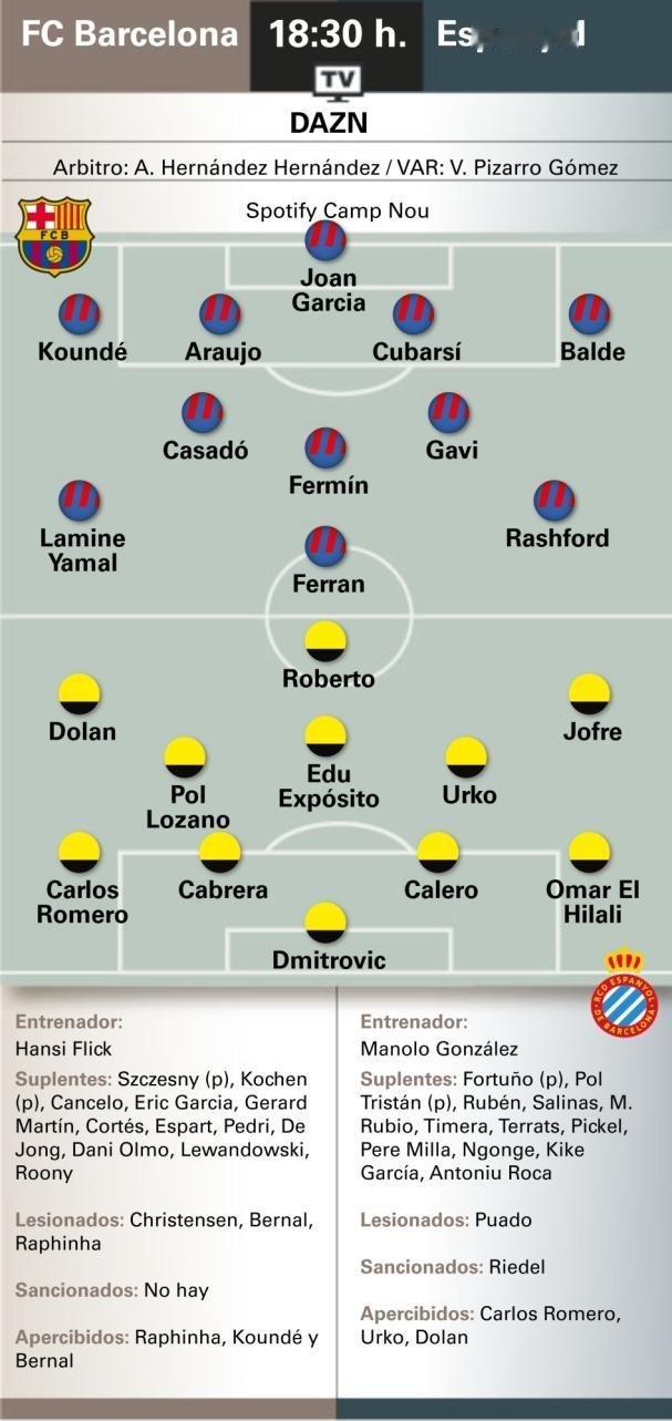媒体预测巴萨VS西班牙人首发阵容。巴萨vs西班牙人巴萨