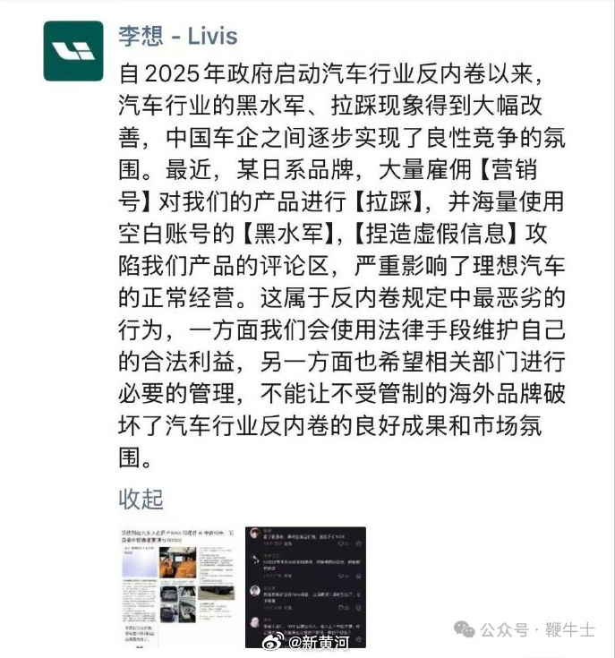 表示:“今天关注到相关网络言论,也收到不少媒体朋友的关切问询。东风日产始终恪守行业规则,倡导良性竞争,尊重每一家为中国汽车产业努力的同行,包括理想汽车。”