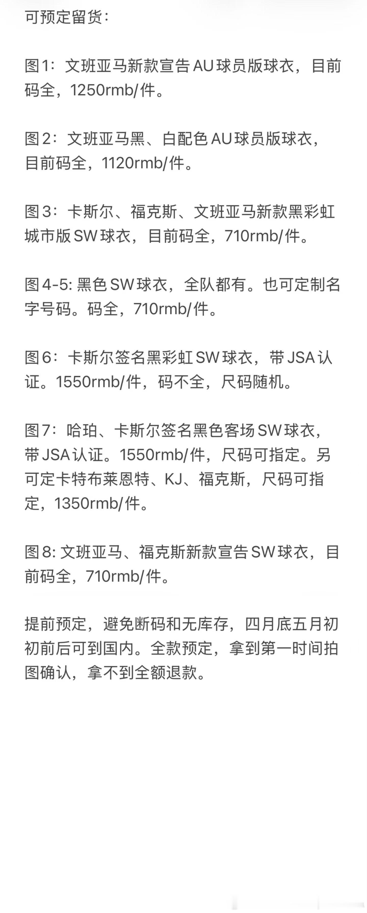 有折扣可以拿,具体看图9,但是现在文班灰AU和卡斯尔黑彩虹SW码不全了,需要的话可以私聊我