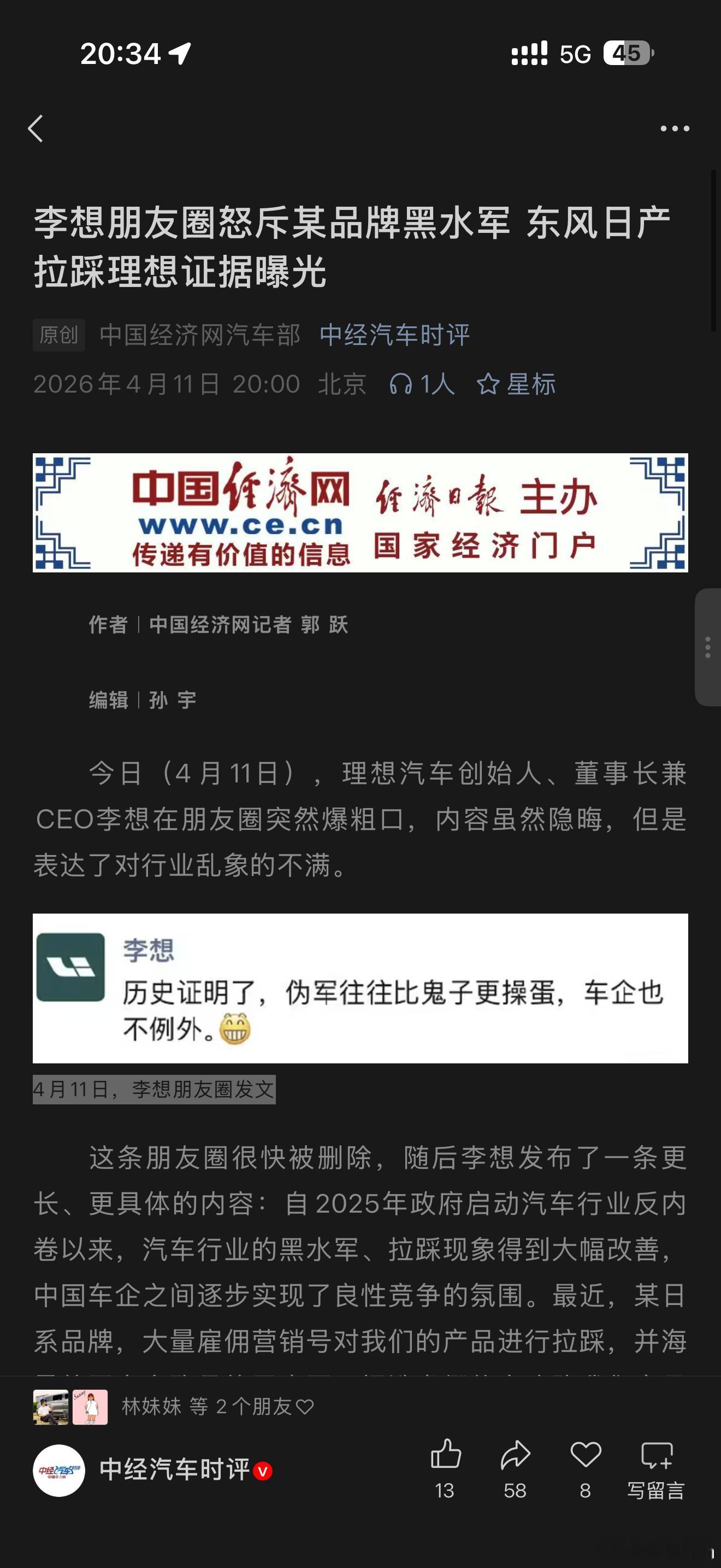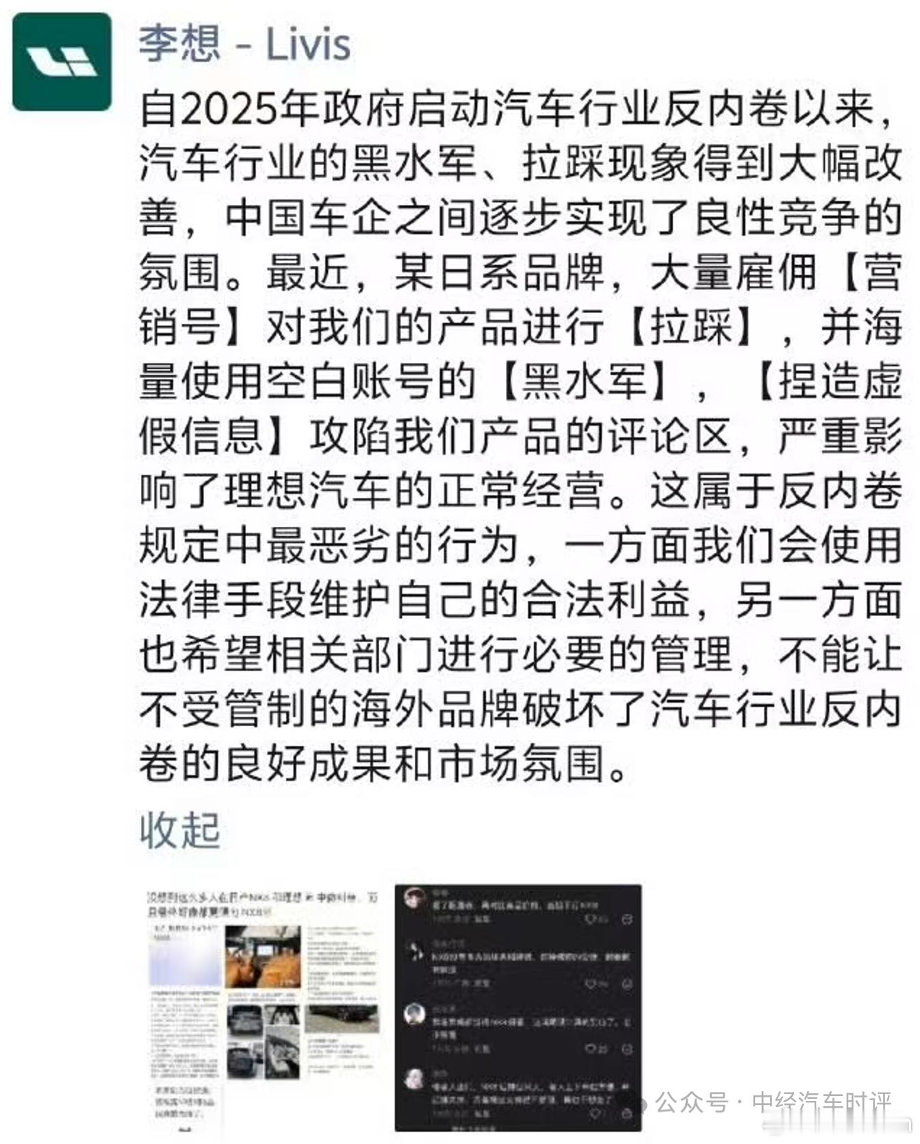 中经汽车的这篇报道把李想这次这么生气的原因找到了,这次真的是东风日产官方直接下场吗?(´・_・`)