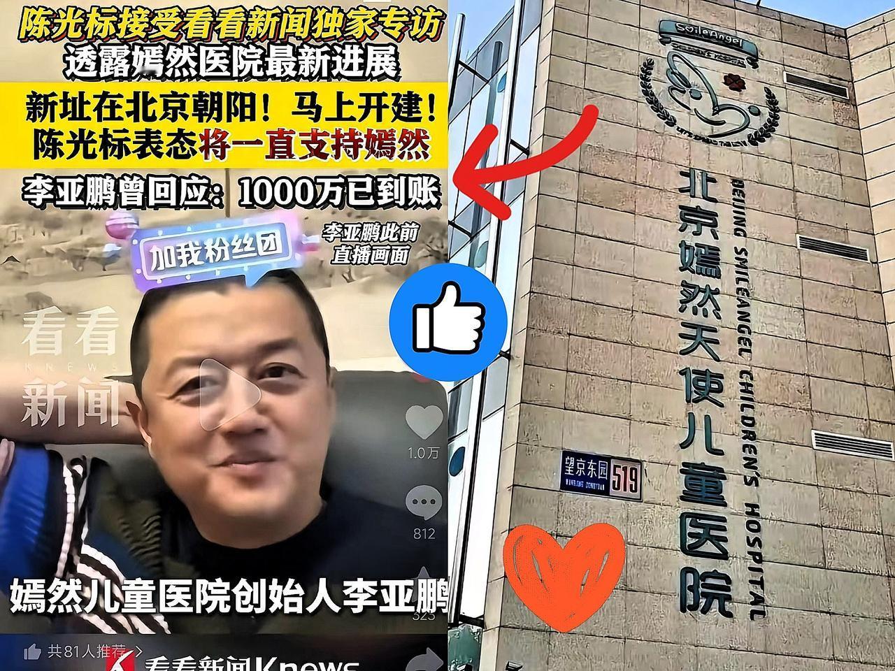 嫣然儿医的最新消息来了!据可靠消息,经过多方努力,嫣然儿医与原房东的和解失败,将在北京朝阳新建医院。 李亚鹏坦言,医院能坚持至今全靠社会各界支持,未来依旧免费为唇腭裂孩子做手术,守住让孩子们绽放笑容的初心。 同时,他也希望更多的爱心人士关注唇腭裂儿童群体,为他们提供更多的帮助和支持。让我们一起携手,为唇腭裂儿童创造一个更加美好的未来!嫣然天使医院 嫣然医院