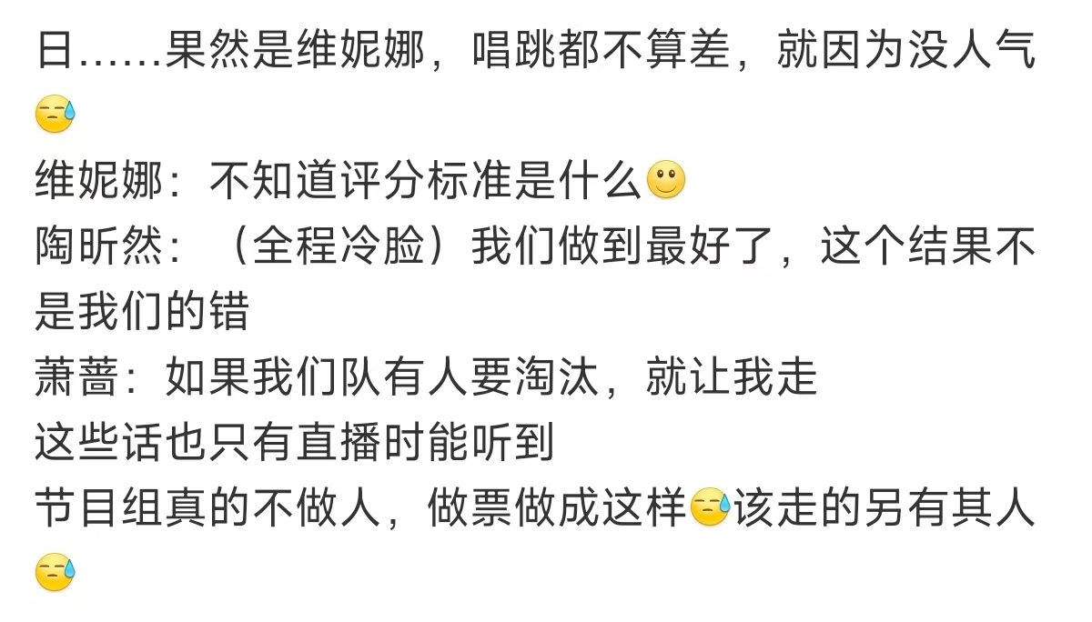 陶昕然全程冷脸陶昕然冷脸维妮娜淘汰,陶昕然真的全程黑脸,从上一轮出成绩就开始,