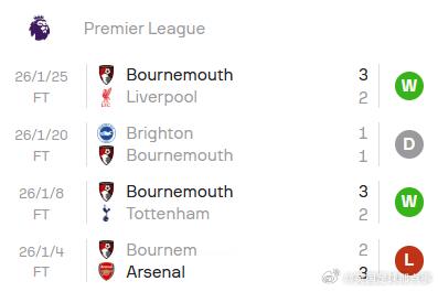 🍒战胜阿森纳后,伯恩茅斯已经连续12轮英超不败。上次输球是今年1月主场不敌阿森