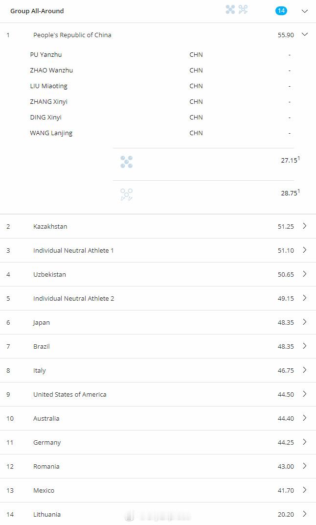 【艺术体操世界杯中国集体全能夺冠 俄罗斯个人全能摘金】国际体坛战报速递 4月11日,艺术体操世界杯乌兹别克斯坦塔什干站产生集体和个人全能金牌。经过五球和三圈四棒的比拼,中国队以两项均排名第一的成绩夺得集体全能金牌。哈萨克斯坦和白俄罗斯分获银铜牌,俄罗斯队名列第五。在个人全能比赛中,俄罗斯的鲍里索娃以113.50分夺得冠军,中国选手王淇和王子露分列第11和17位。