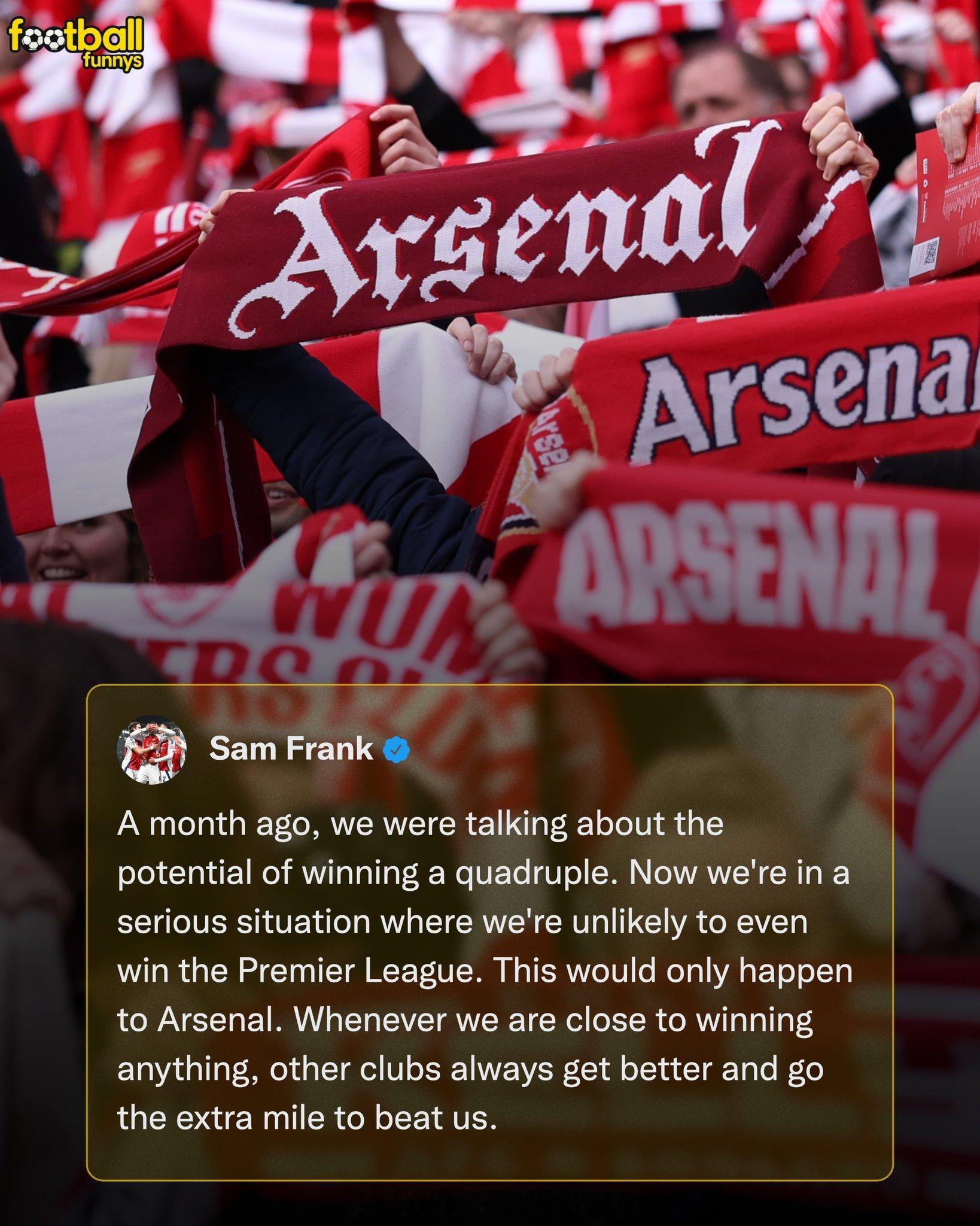 春天来了,阿森纳开始拉垮了阿森纳球迷心知肚明:之前我们在谈四冠王,现在最稳的英超冠军看起来都不稳了。这就是阿森纳。每当我们接近赢点儿什么的时候,我们就开始一坨,而别的球队同时都在越来越稳定,然后击败我们。