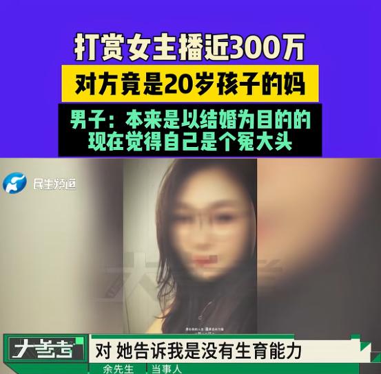 真上头了!一男子刷到一位女主播时,瞬间一眼万年,后来两人确定关系,为了让女主播开心,男子狂刷礼物打赏,奔现后也带她消费,加起来有260多万!可偶然得知女主播已婚,女儿都20岁了,男子十分崩溃,想要维权,但又不忍心! 2023年,四川42岁的余先生在上海刷同城直播时,偶然刷到一位女主播,当时就有了“一眼万年”的感觉,整个人直接真上头了。 余先生离异带着两个女儿,一直想找个合适的伴侣,看到这位女主播时,觉得对方就是自己要找的人,心里满是欢喜。 女主播在直播间一直立着单身人设,私下和余先生私聊时,也不断释放暧昧信号,两人聊着聊着,很快就在网上确定了恋爱关系。 确定关系后,余先生对女主播更是掏心掏肺,为了让女主播开心,也为了在直播间撑场面,他开始疯狂刷礼物打赏。 刷到60多万的时候,余先生和女主播线下见了面,两人发生了关系,这之后余先生彻底陷进去,打赏变得更疯狂。 女主播一天要播3场,余先生每场都准时到场,平均每场刷一两万礼物,最多的一次,直接一次性刷了30多万,稳稳当当地成了直播间的“榜一大哥”。 他也曾跟女主播提过,让她别再直播了,自己可以养着她,可女主播总说就喜欢直播的感觉,不肯放弃直播事业。 余先生也没再多说,只想着只要对方开心就好,继续默默砸钱支持。 然而在这一年的时间里,余先生线上打赏总共花了180多万,线下和女主播见了4次面,每次相处7到10天。 见面期间,女主播带着余先生四处旅游、疯狂购物,吃饭、住宿、买奢侈品全都是余先生买单,前前后后线下又花了80多万,线上线下加起来,一共花了260多万,接近300万。 余先生全程没心疼过钱,他一直是以结婚为目的和女主播交往,女主播还跟他说自己没有生育能力,余先生听了还觉得特别合适,想着对方不能生育,就能好好对待自己的两个女儿,对这段感情愈发投入。 交往快一年,余先生觉得感情和金钱都投入到位了,多次跟女主播提起结婚的事,可女主播总是找各种理由推脱,一会说时机未到,一会说想再相处看看,始终不肯给个准话。 余先生心里慢慢起了疑心,找了私人渠道去打听女主播的真实情况,这不打听还好,一打听直接让他五雷轰顶。 原来这位女主播是1985年出生的,早就已经结婚,还有一个20岁的女儿,之前说的单身、没有生育能力,全都是骗人的假话。 余先生拿着查到的证据去质问女主播,对方见瞒不住了,直接摊牌,甚至还说从来没说过要嫁给他,一切都是余先生一厢情愿。 得知真相的余先生彻底崩溃,他怎么也没想到,自己倾心相待、奔着结婚去的人,从头到尾都在骗自己,那些温柔体贴、暧昧情话,全都是为了诱导他刷钱的手段。 他清楚女主播的行为涉嫌诈骗,也想过走法律途径维权,追回自己花出去的260多万,可每次一想到和女主播相处的那些点滴,心里就软下来,始终下不了决心去追究。 余先生说,女主播是自己离婚后第一个想结婚的人,可现在这段经历,让他直接失去了喜欢一个人的勇气。 这件事曝光后,很快在网上引发热议,网友们看法各不相同,有网友觉得:“这男的也太恋爱脑了,260多万不是小数目,明知道被欺骗还不忍心维权,纯属活该,钱多得没处花。” 也有网友表示:“女主播太缺德了,明明已婚还装单身骗人感情和钱,这就是赤裸裸的诈骗,就该受到法律制裁,男子虽然心软,但也该为自己的盲目付出代价。” 其实这类直播打赏骗局并不少见,不少主播会利用单身、恋爱等噱头,诱导粉丝高额打赏。 余先生的遭遇让人唏嘘,他是真心付出感情,却落入精心编织的谎言里,最后人财两空,还因念旧情不忍维权。 这也给所有人提了个醒,网络世界虚拟又复杂,面对主播的暧昧暗示、情感诱导时,一定要保持理智,尤其是涉及大额金钱时,更要擦亮眼睛,先核实清楚对方的真实身份,别被一时的上头冲昏头脑,最后落得人财两空的下场。 感情和金钱都要交付给值得的人,盲目付出只会换来一场空,遇到欺骗时,也该学会用合理的方式维护自身权益,而不是一味心软妥协。 对此您有什么不同的看法,可以在评论区留言讨论!!!