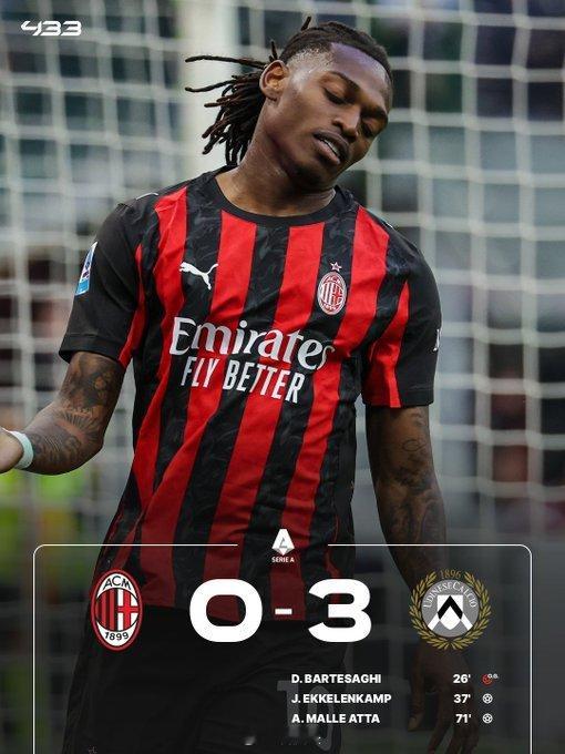 【AC米兰0比3乌迪内斯 】这场比赛米兰踢的非常好,阿莱格里变阵做的特别好,虽然0-3输球,但是这是本赛季米兰进攻最流畅的比赛。