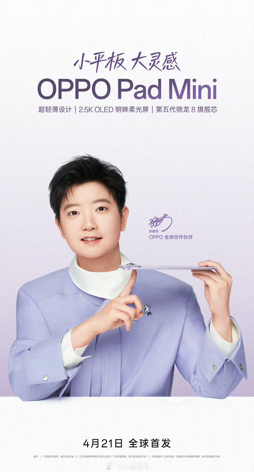 OPPO Pad mini。8.8" ,2.5K 144Hz OLED,骁龙8Gen 5,67W+8000mAh,超轻薄设计,厚5.39mm,重279g。