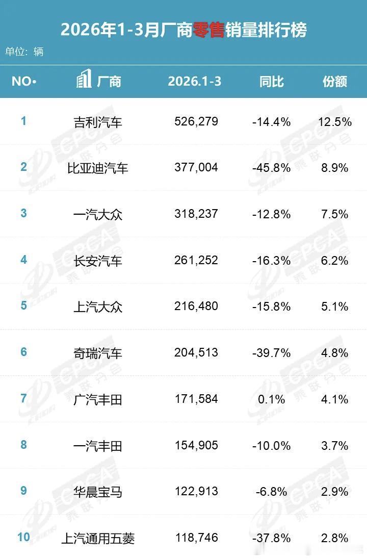 今年车企压力都挺大的一季度对比去年同期,销量降幅都很大核心原因可能是购置税退坡影响以及今年过年比较晚,一季度购车动力不够。