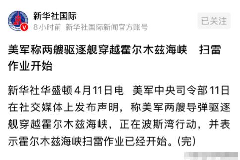 真勇敢!美国直接派两艘驱逐舰,大摇大摆穿越霍尔木兹海峡,还当场展开扫雷作业,这波操作瞬间让本就不平静的中东,又添了一把火,如今不少国家都紧急关注着局势的走向。 大家几乎都知道,霍尔木兹海峡是全球最关键的石油通道之一,全世界不少石油运输都要从这里过,而美国突然派驱逐舰来扫雷,名义上说是保障航道安全,背后大概率另有目的。 要知道,美伊刚停火没多久,伊朗之前就放话,要是美国敢在波斯湾搞事,就封锁霍尔木兹海峡,美国这次的行动,很可能是在试探伊朗的底线,同时也想巩固自己在波斯湾的控制权。 而伊朗得知消息后,立马派出军舰在周边警戒,却没直接动手,显然是不想打破停火局面,但伊方也不会任由美国“挑衅”。 这个时候沙特、阿联酋等海湾国家大概率会慌了神,因为他们的石油出口几乎全靠霍尔木兹海峡,生怕美伊再起冲突,影响自己的利益,纷纷悄悄呼吁双方保持冷静。 另外,俄罗斯也表态,反对任何加剧中东紧张的行为,还暗中向伊朗提供了一些导航设备支持,制衡美国的行动,欧盟则紧急呼吁双方克制,避免局势失控。 说到底,还是希望双方都能冷静下来,别再搞“挑衅”,通过协商解决分歧,毕竟和平稳定,才是各方最该追求的。