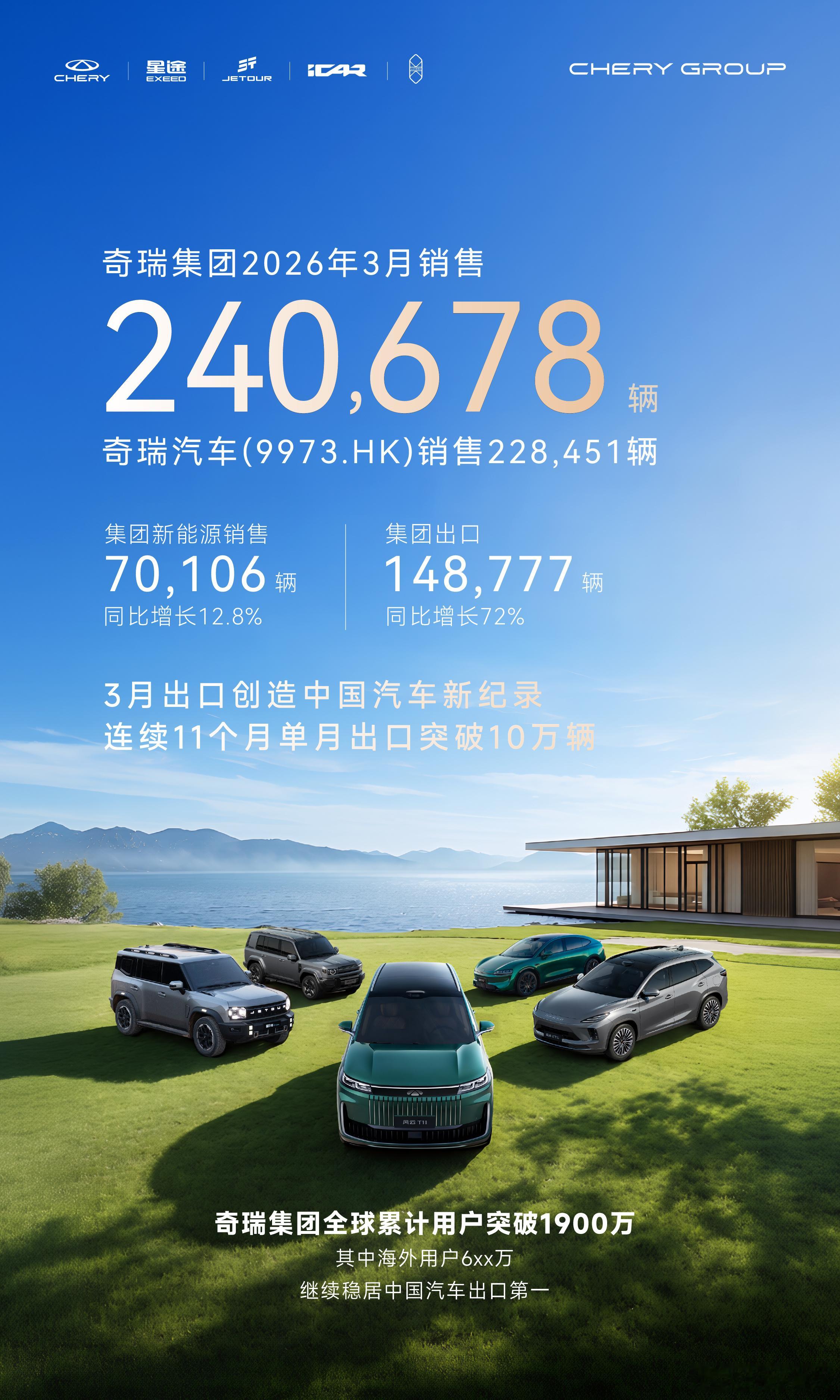瑞不可挡奇瑞在英国汽车市场鲨疯了!2026年3月单月狂卖22495辆,同比暴涨481.6%,直接拿下品牌销量第二,市占率5.9%,把宝马、福特、起亚这些老牌车企都甩在身后。1-3月累计销量36038辆,同样稳居第二,增速断层式领先。中国车企能在英国市场这么能打,真的太提气,奇瑞这波属实赢麻了!中国汽车出口第一品牌智驾数码团