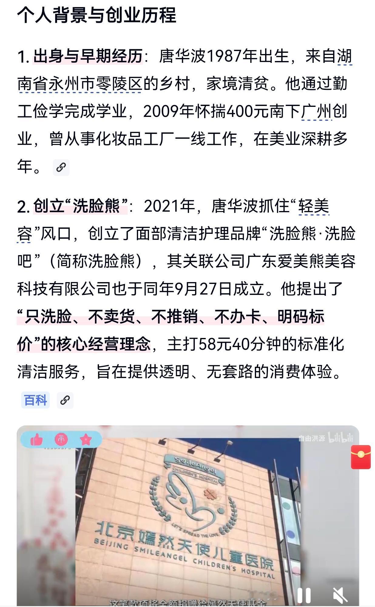 感觉有点马云的腔调味,有点让人感觉高尚! 作为洗脸熊品牌创始人唐华波能走到今天,肯定有他的独特之处!无论如何,我还是相信有值得我们学习的地方!“人无完人”,我们不必、也不该苛求。