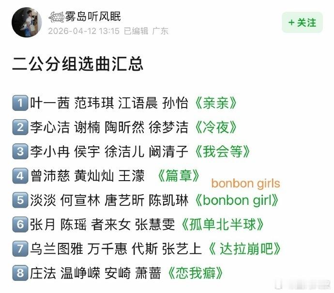 浪姐二公分组选曲浪姐二公分组选曲🍉
