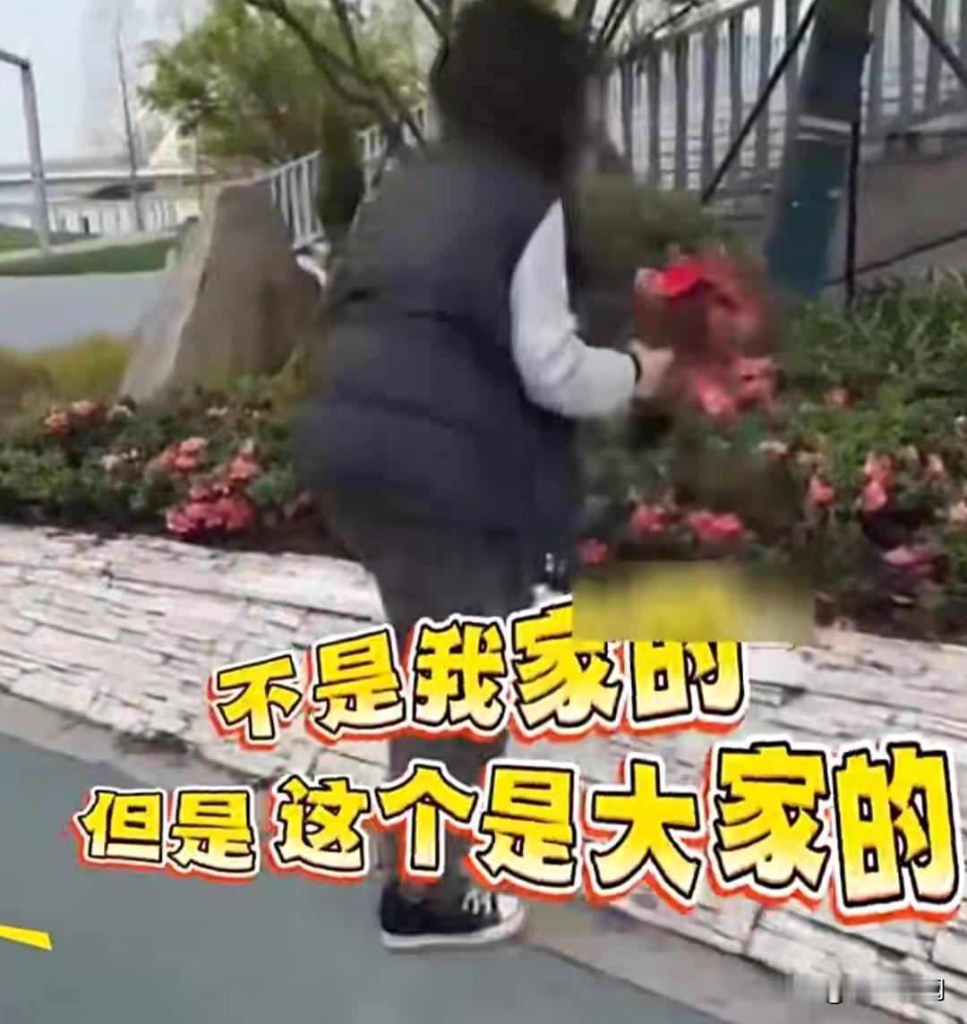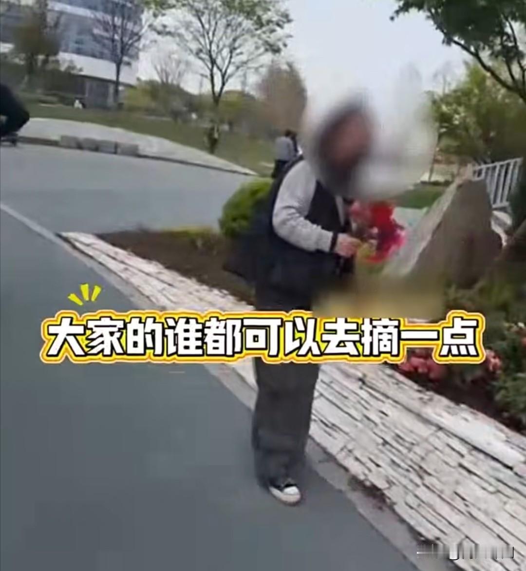 公园摘花被当场制止,大妈回怼这话听着真离谱 4月10日江苏昆山,公园里闹起一件小事却引来全网热议。目击者单女士当时正带着孩子遛弯,一眼就瞅见一位大妈手里捧着一大把刚摘的花,还在花丛里来回转悠,接着薅新鲜花朵。 单女士看不过去上前好心劝阻,没想到大妈压根不领情,还理直气壮回怼:花又不是你家的,是大家的,谁都能摘一点!说完扭头就走,把单女士噎得没话说。 说实话这话逻辑根本不通,公共花草是所有人共同观赏养护的,不是谁想摘就能薅回家私占。人人都抱着这种想法动手,公园里早就光秃秃一片,哪还有美景可看?出门游玩讲究个文明素养,别为了一己私欲破坏公共环境。 你们在公园遇过这种摘花折枝的人吗?碰到了会上前制止不?