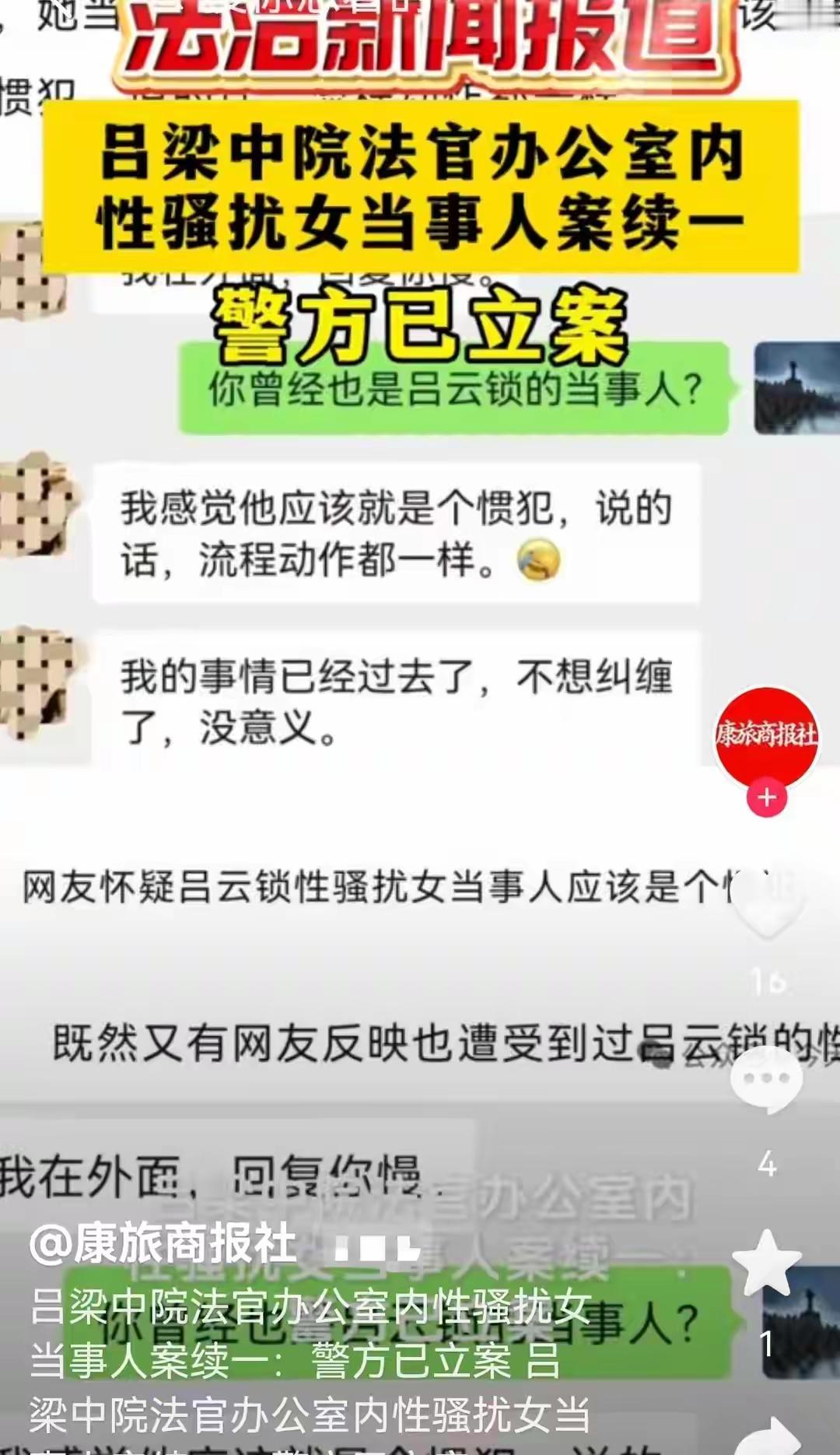 法官把她叫到办公室,说是看新证据。结果一进门根本不是那回事儿,吕某某上来就夸她漂亮、眼睛迷人,说早就看上她了,要是愿意“配合”,判决能偏着她。 说着就动手动脚,搂腰、亲脸颊、硬抱,动手摸,还说了些更过分的。王女士全程拒绝,最后借口接孩子才挣脱跑掉。幸好她留了心眼,全程录了音,拉扯声和那些露骨话全录得清清楚楚。 这人已被立案调查。律师说这就是强制猥亵,知法犯法必须严惩。 这种人怎么能坐到这个位置?道德败坏、心术不正,胆子大到在办公室就敢霸王硬上弓。谁给他的胆量?难道是从没失过手,让他觉得是个女人就能拿下?这回碰上硬茬儿了,必须严查到底,看看他以前祸害过多少人。可惜这次他失算了,人家就是要揭他老底,让他丢饭碗、吃牢饭。 日子过得太好就飘了,现在可好,父母妻儿怎么看?亲朋好友怎么看?法律又该怎么判他?希望严惩不贷,判他几年,长长记性! 法官被曝猥亵案件当事人 警方立案