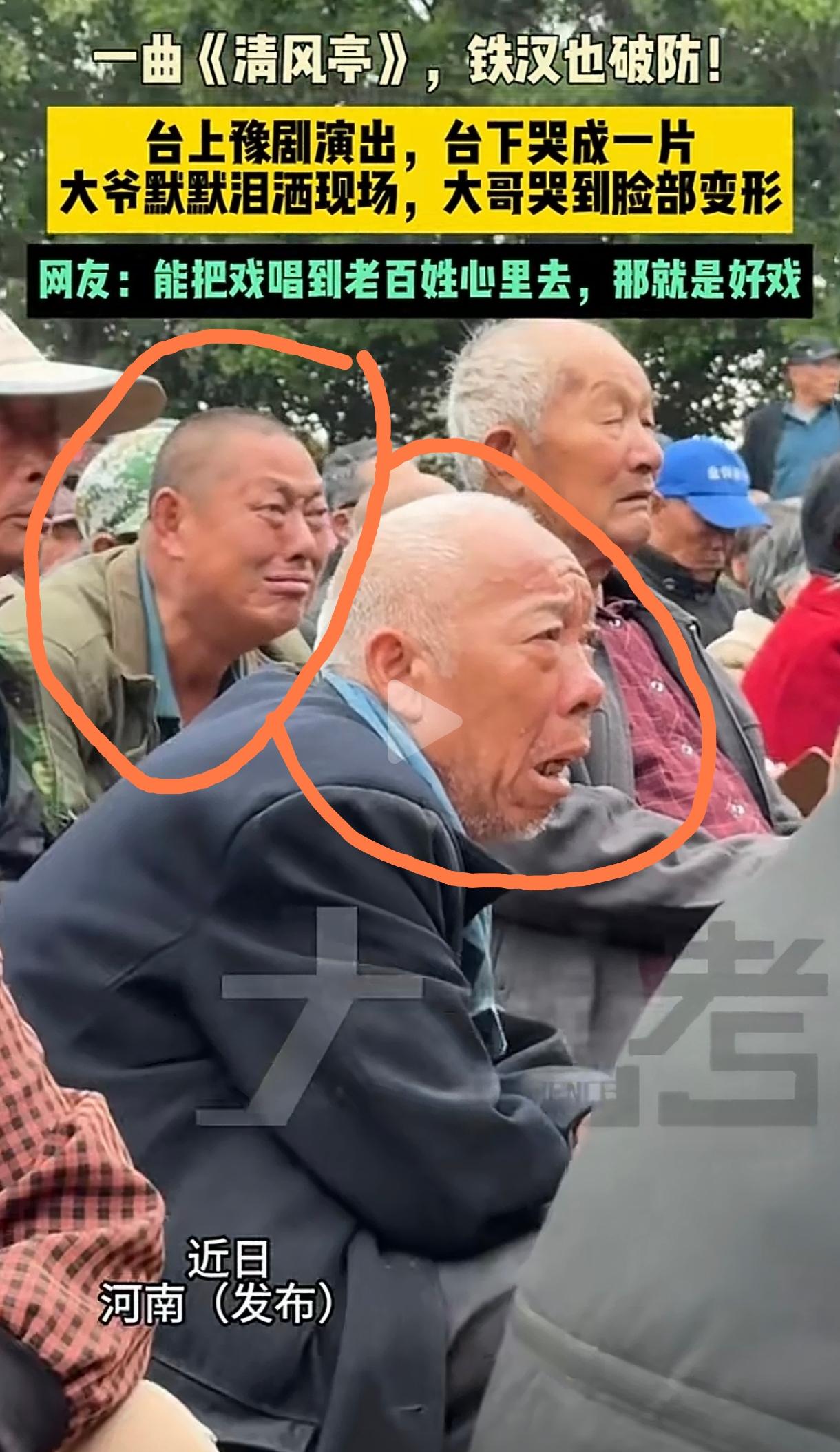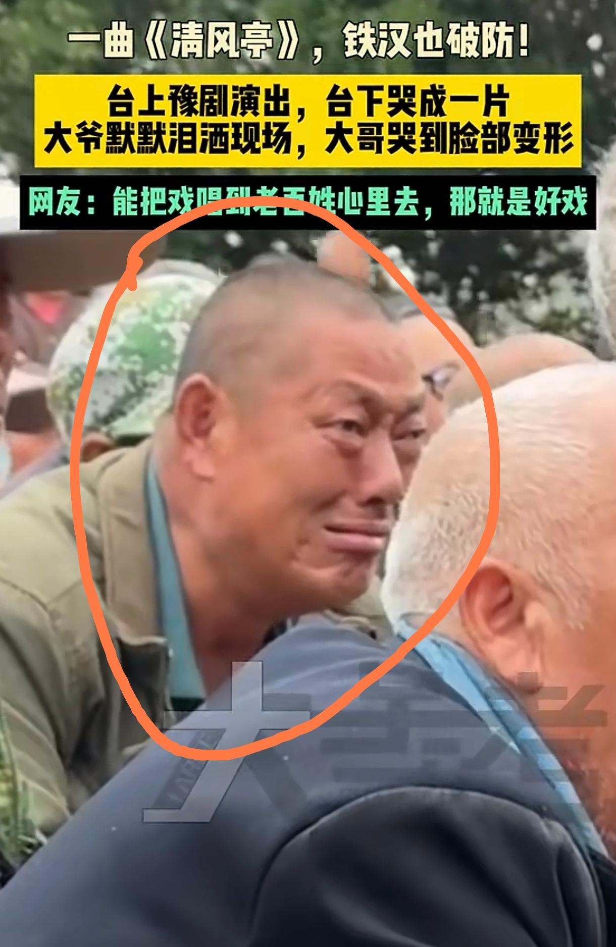戏曲的魅力竟然这么大?这位威风凛凛,铁血硬汉样式的大哥感动泪流的竟然脸都变形了,老泪纵横啊。小时候像这种豫剧,我也看了不少,一直觉得很土。但是上了年纪之后,特别是我现在40岁以后,一曲豫剧听罢,也是感慨万千,演的那是真不错。甚至我都觉得比现在的某些电视剧电影还好看。因为这种豫剧剧情首先设定就很好,都是忠孝仁义,比如我看过杨家将剧目,又演又唱又说,所以现在投入的看进去,会感动的不行。传统文化的魅力如果细细品来,会发现回味无穷。 就像网友说的我特别赞同,网友说,古代普通人没办法接受很好的教育,但是从来不影响他们传承忠孝仁义。像豫剧黄梅戏等等这些剧和说书人起到了极大的作用,每当民族危亡的时候,这种传承都能让我们起死回生。