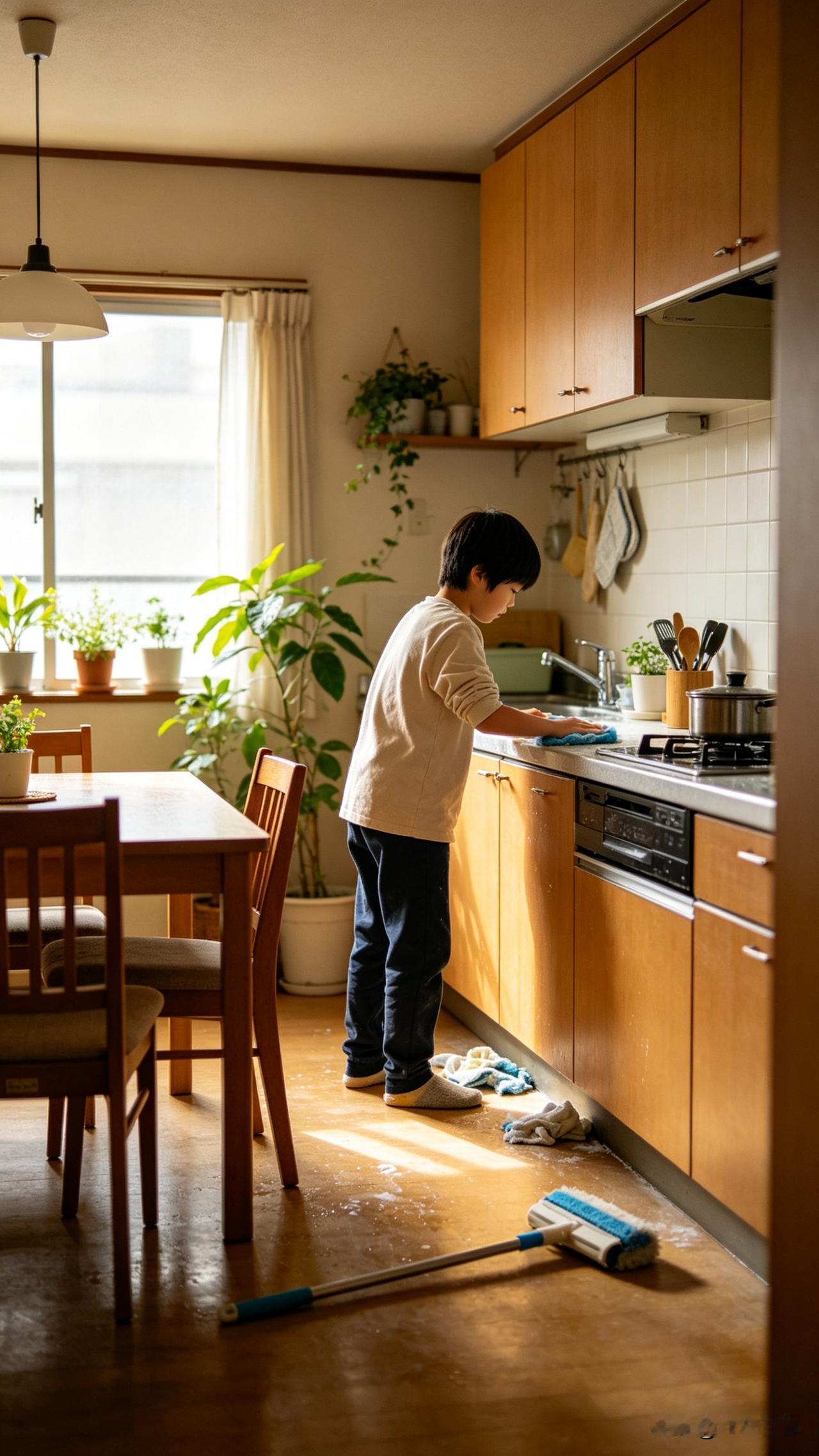 育儿专家说: “废掉一个孩子最快的方式,就是从童年时,不让他做任何家务。” 咱们普通老百姓过日子,不是只靠读书就能搞定的,很多事情都是要亲手做的。现在的有些家长,生怕孩子累着,饭来张口衣来伸手,连书包都替他收拾,结果把孩子养成了“甩手掌柜”。 我邻居家孩子,都上高中了,袜子还得他妈妈洗,而且觉得父母为他服务是天经地义。结果住校后,因为生活不能自理,臭袜子到处丢,被室友孤立,成绩也直线下降。 其实,做家务不光是干活,更是在培养责任感。让孩子擦个桌子、洗个碗,哪怕做得慢、做得差,他也知道自己是家里的一份子,有义务为这个家付出。 从小让孩子经手这些事情,他将来离开家才不会两眼一抹黑。更重要的是,能做家务的人,内心更强大。当他能搞定生活的琐碎,面对学习和工作的压力时,心态也更稳。 父母养孩子,不能养出个只会考试的机器,而是要养出个能在这个社会上立得住脚、过得幸福的真人。所以啊,有些家务,孩子能做的尽量让他们去做。