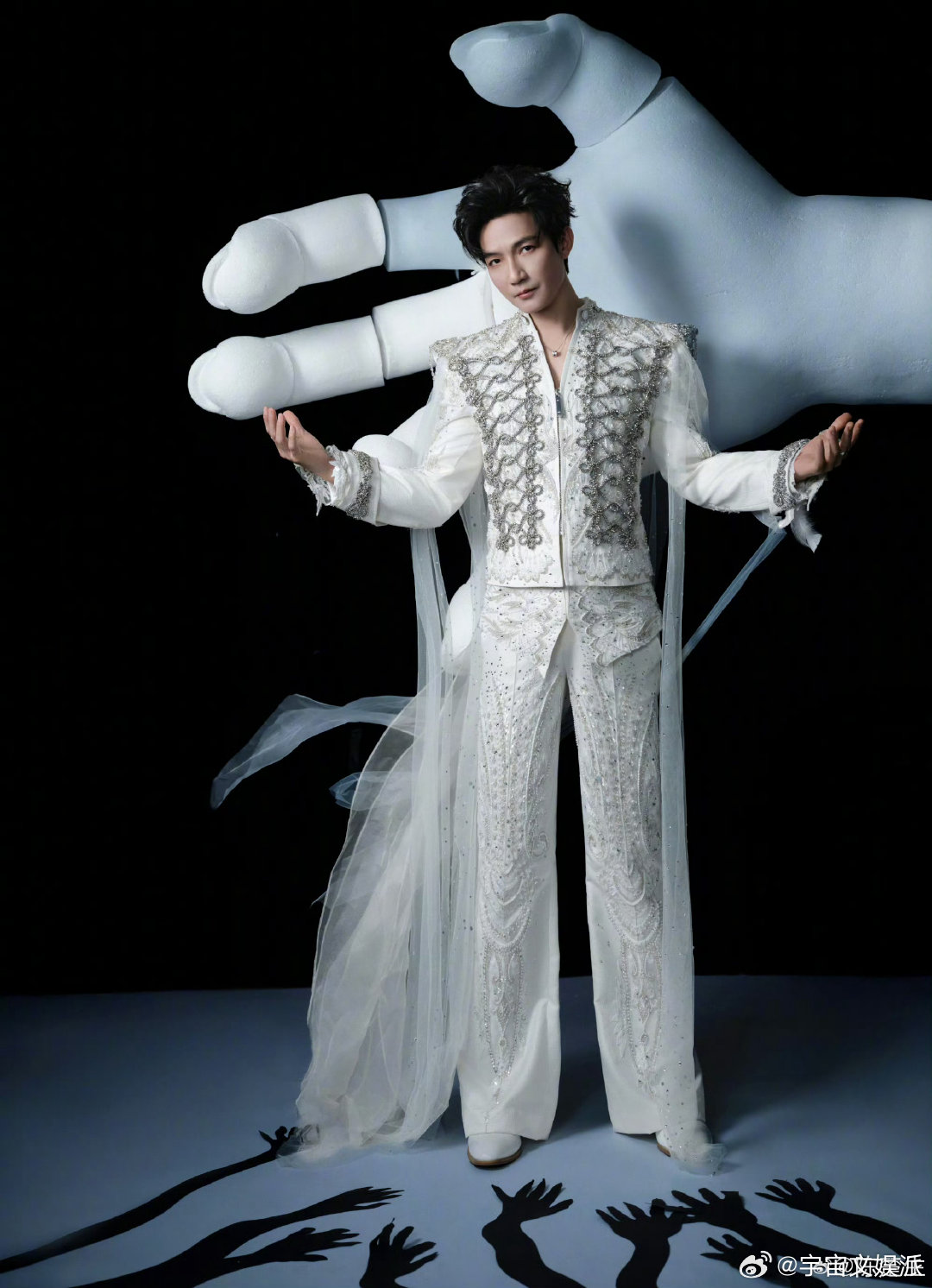蔡徐坤芝加哥站后台造型 黑白画面里的他安静又疏离,简约穿搭衬得气质愈发清冷,隔着